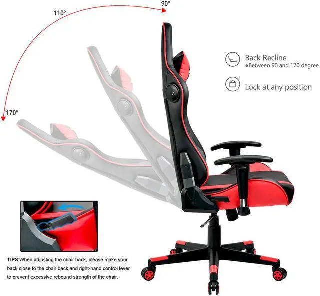 MULTI-FUNCTION: Bluetooth speakers for 6-hour music play; Armrest and seat-height adjustable; 90~170°reclining; Rocking; 360°swivel; Removable headrest pillow and lumbar cushion for added support.