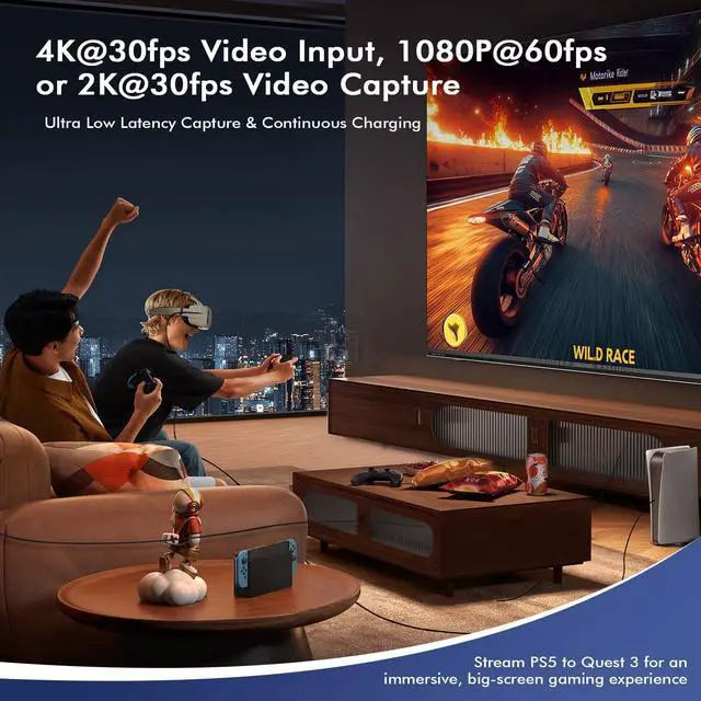 Capture every thrilling moment from your VR adventures with HDMI-enabled devices like Quest3/3s/2, allows you to seamlessly switch between gaming and office tasks, supporting multiple screens