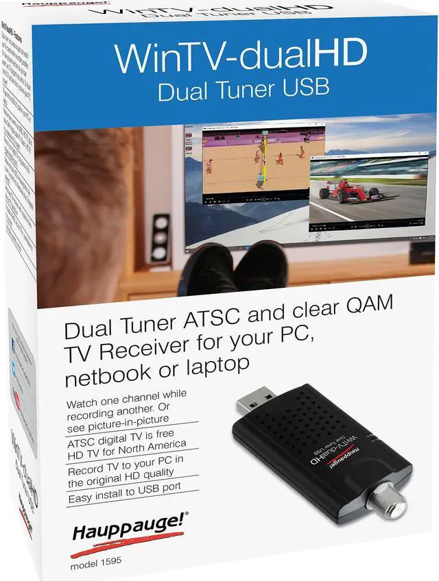 The WinTV-dualHD turns your PC into a high definition DVRPlug the WinTV-dualHD into your PC and turn it into a HDTV digital video recorder (DVR). Record two HD TV programs at the same time in the original HD quality. We use TitanTV, an Electronic Program Guide, to schedule your TV recordings. TitanTV allows you to see what's on TV now and what's coming up. Schedule TV recordings with the Hauppauge WinTV v8 application and TitanTV. Plus pause live TV and record your favorite TV programs in the full digital TV format.