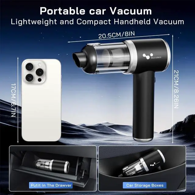 helloleiboo Handheld Car Vacuum Cleaner 16000PA