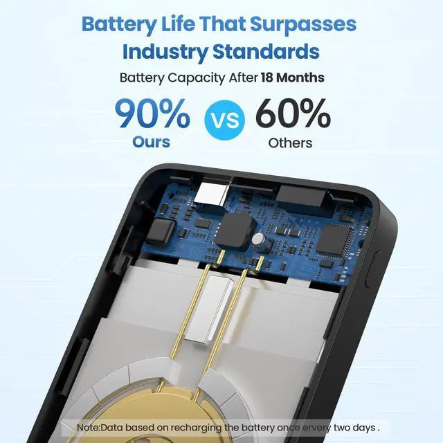 Ultra-Strong Magnetic This magnetic portable charger is equipped with ultra-strong magnets that firmly attach to the back of the iPhone 17/16/15/14/13/12 Series to realize 7.5W magnetic wireless charging. Align your iPhone and battery with a snap. Say goodbye to disconnection issues caused by wireless charging misalignment.
