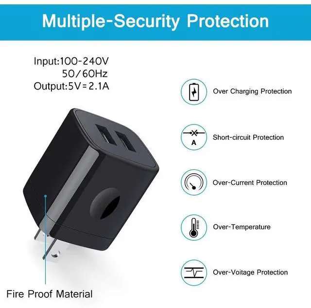 • Feature The power adapter Output DC 5V/2.1A, Input: AC 100-240V.Dual Port USB Plug Adapter is Ergonomic, Compact,Small and Portable, Ideal for Travel.