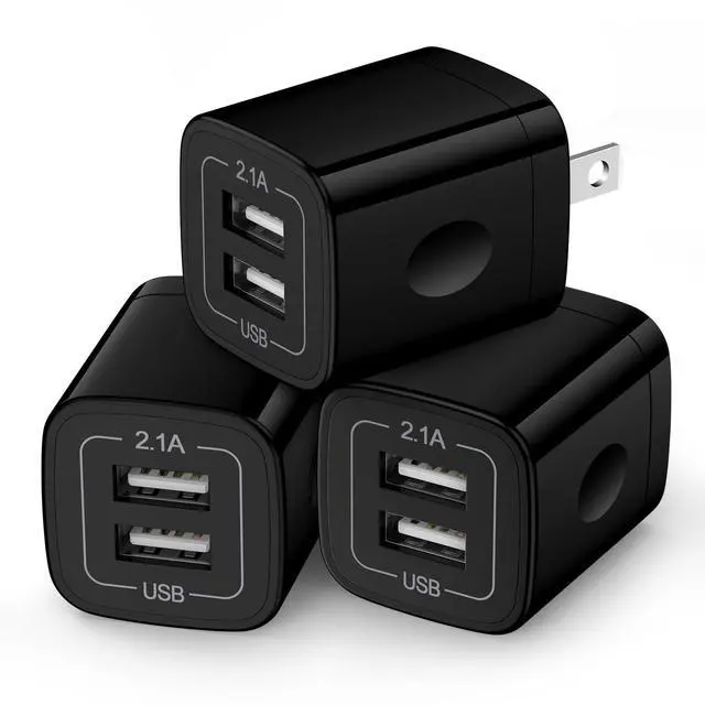 Wall Charger Block,2.1A/5V Dual Port USB Wall Plug in Phone Travel Power USB Adapter Plug,3Pack Black Charger Cube Fast Charging Compatible iPhone 17 16e 15 Pro/14,Samsung Galaxy S25/S24/S23/S26 Ultra