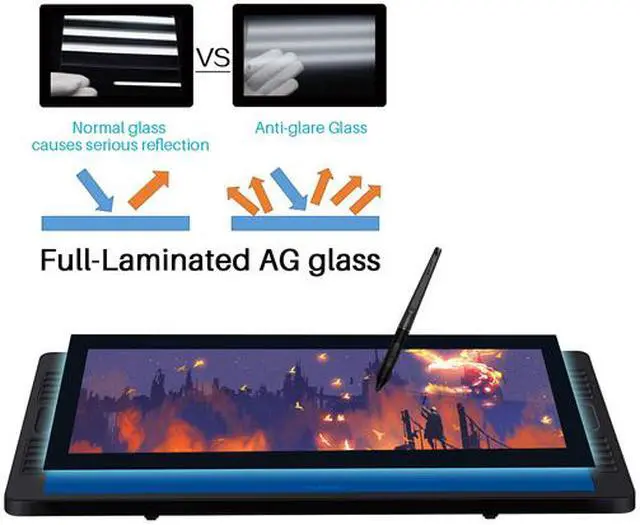 Adopting the pioneering chemically etched anti-glare glass, the glare reflection on the Kamvas Pro 20 (2019) screen can be effectively reduced, alleviating the visual fatigue of designers and providing more cares for their eyes.