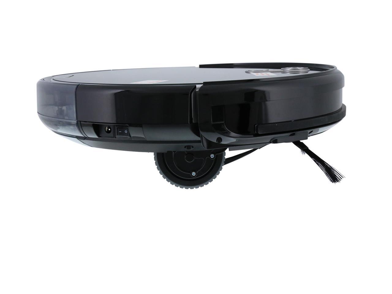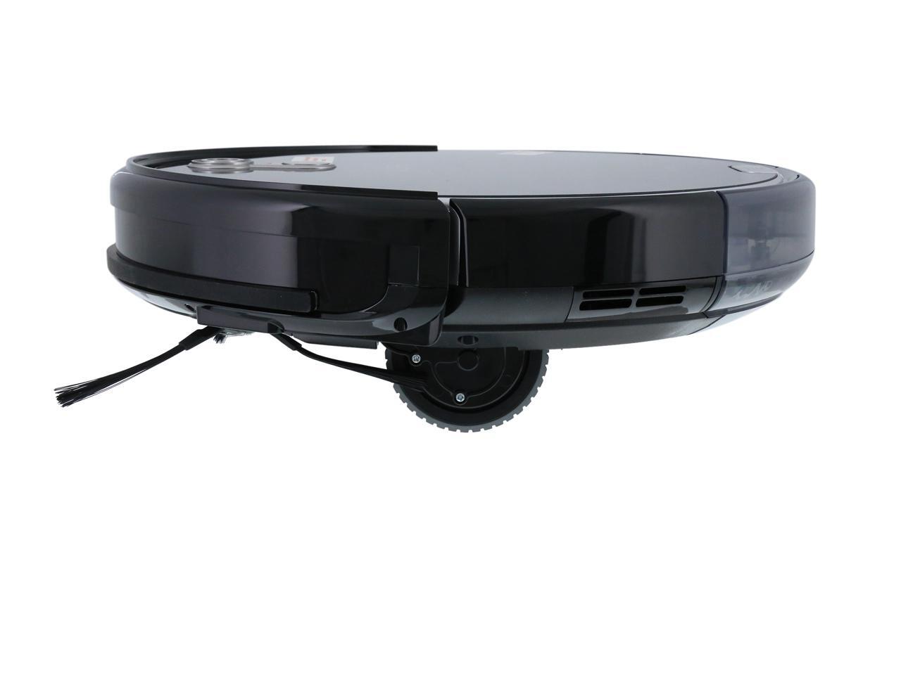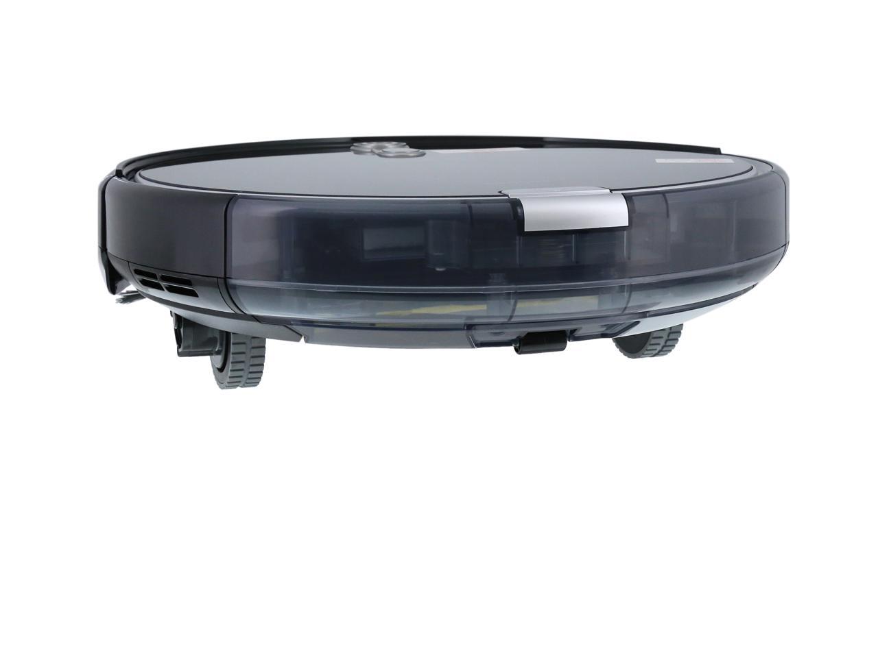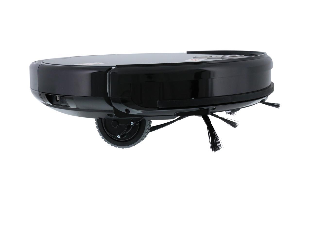 The robot’s powerful suction vacuums dirt into the dustbin.