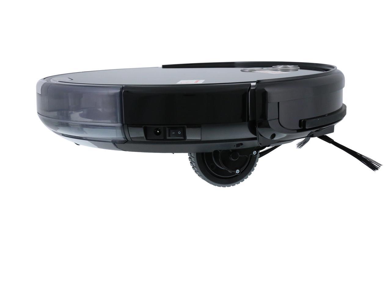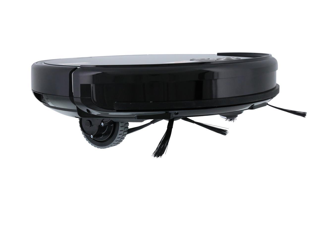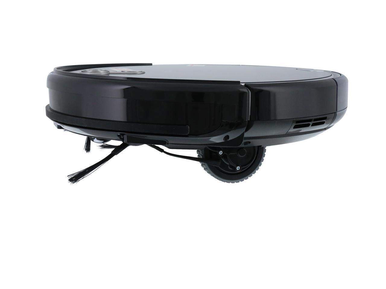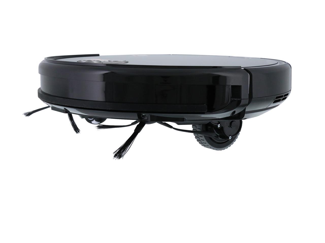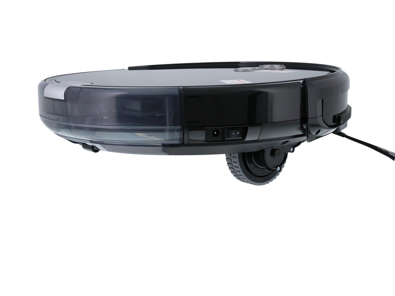 The robot’s powerful suction vacuums dirt into the dustbin.