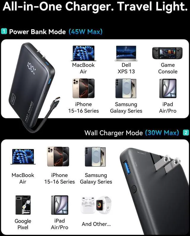 ![]() 3in1 Portable Charger 45W | ![]() Slimmest 10000mAh 45W | ![]() Smallest 10000mAh 45W | ![]() Smallest 20000mAh 22.5W | ![]() Smallest 20000mAh 45W |