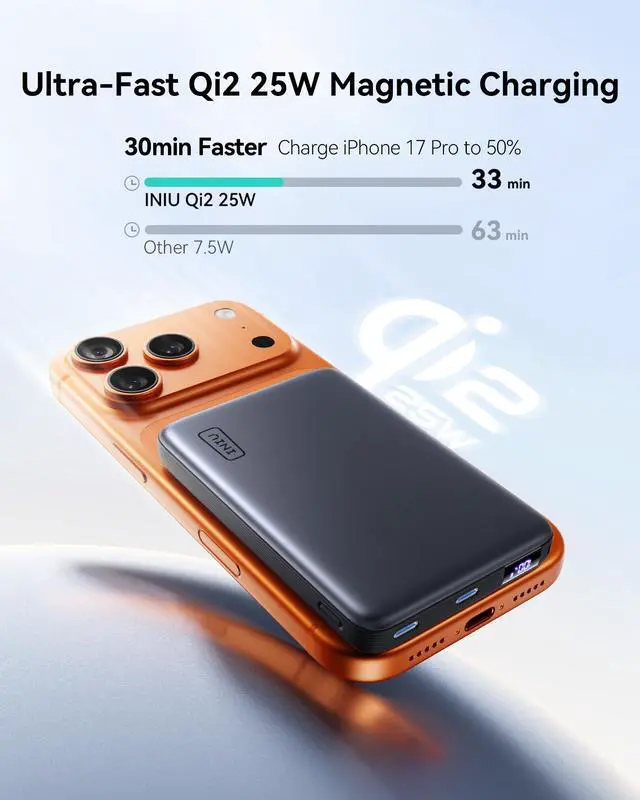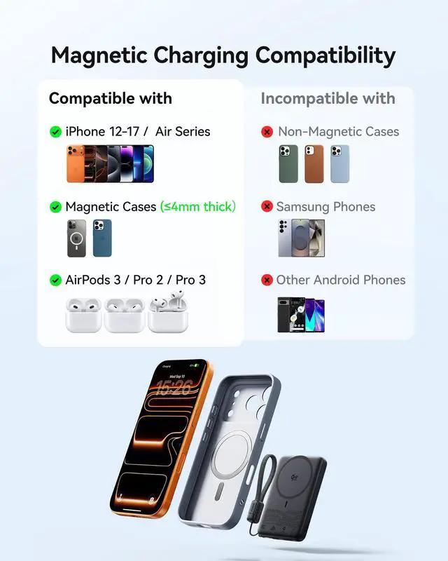 iPhone 16 Plus/ Pro Max and later models (excluding iPhone 16e) will support Qi2 25W after updating to iOS 26 or later. iPhone 12/13/14/15 series models updated to iOS 17.4 or later can only wirelessly charge at Qi2 15W.