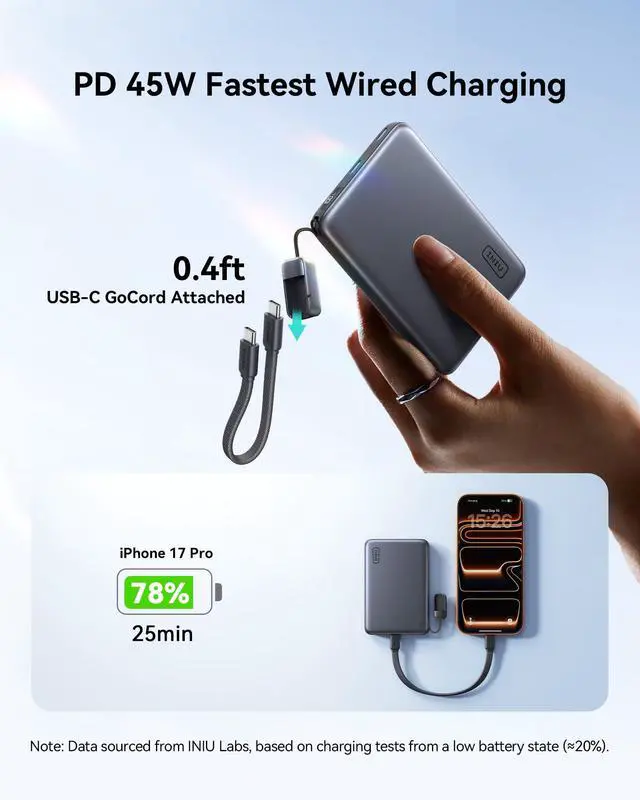 External batteries typically supply 60%-70% power to devices, with 30%-40% lost to heat and voltage conversion. So a fully charged INIU 10000mAh power bank can offer an estimated 6000 mAh-7000mAh to your devices.