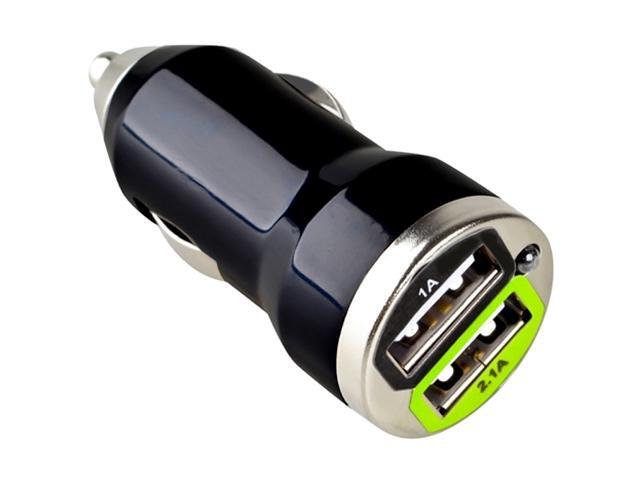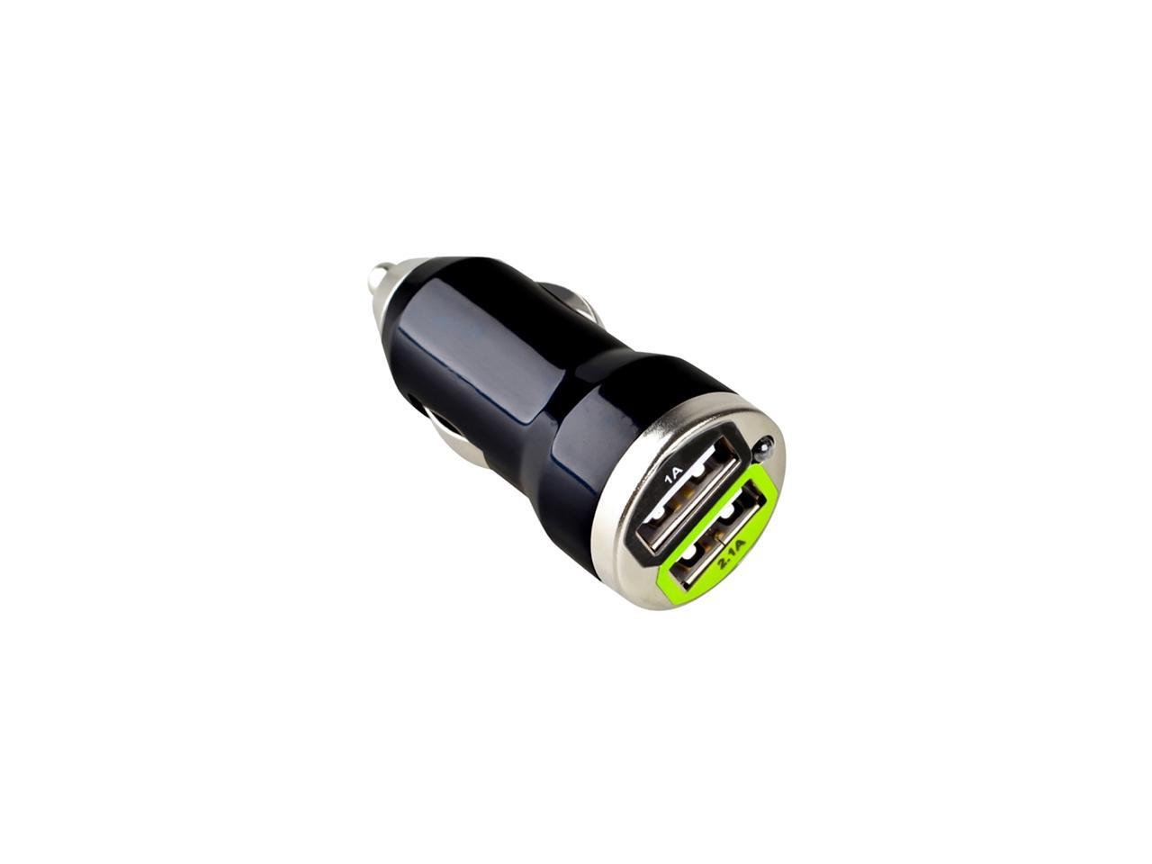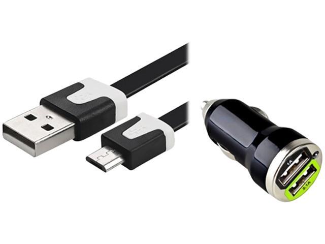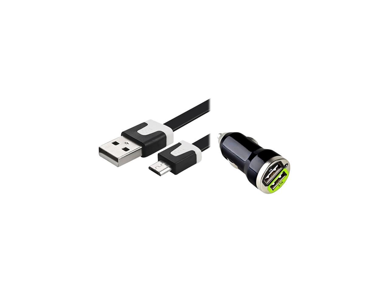 Insten 1354704 Black Dual USB Mini Car Charger Adapter with Black Micro USB 2-in-1 Noodle Cable