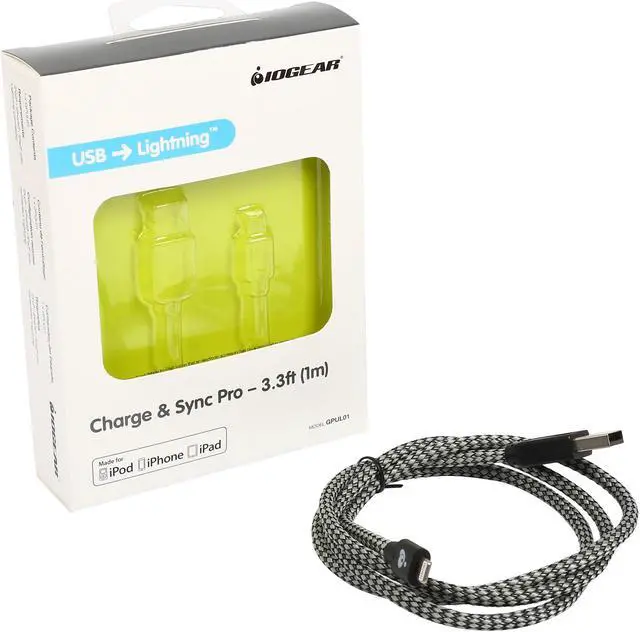 IOGEAR GPUL01 Black Charge & Sync Pro Cable - USB to Lightning Cable