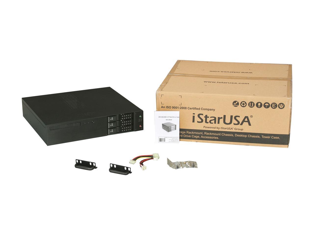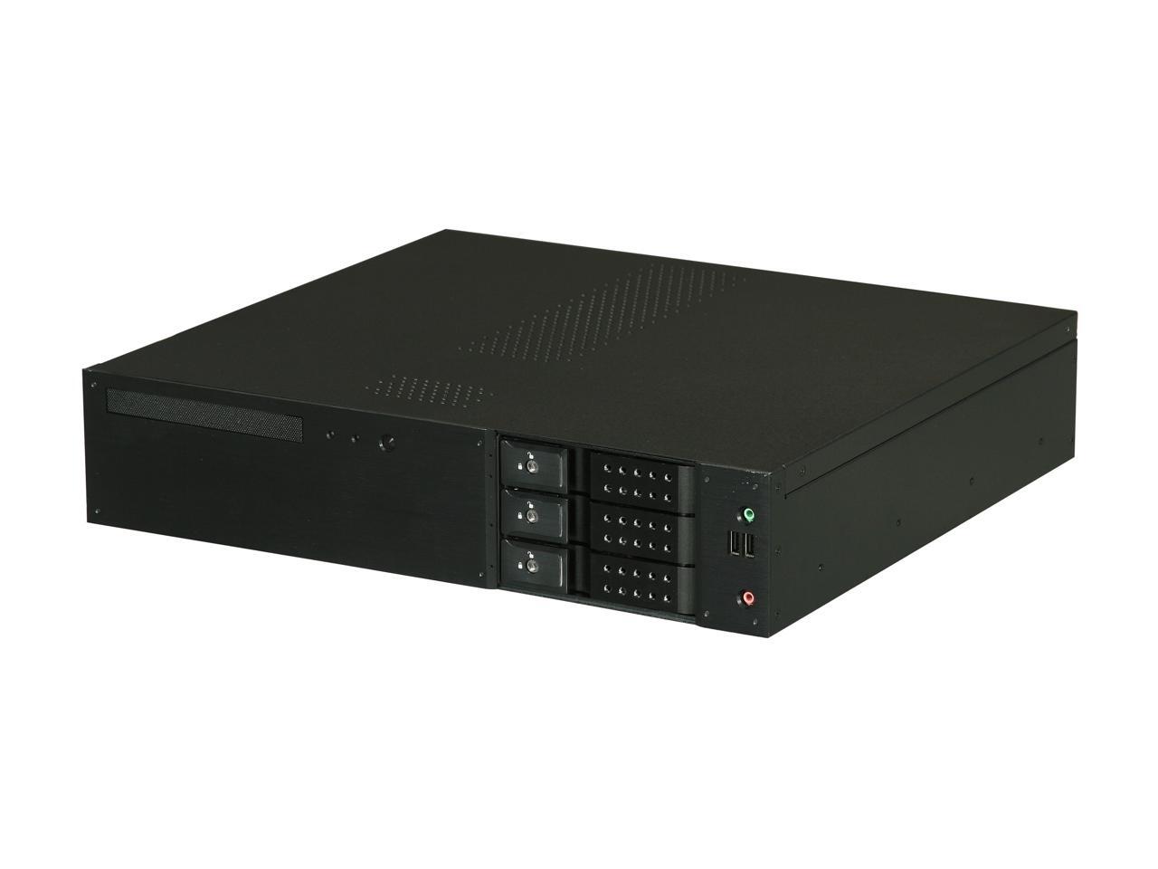 iStarUSA D-230H-T Black Aluminum / Steel 2U Rackmount Compact 3x3.5" Bay Trayless Hotswap microATX Chassis
