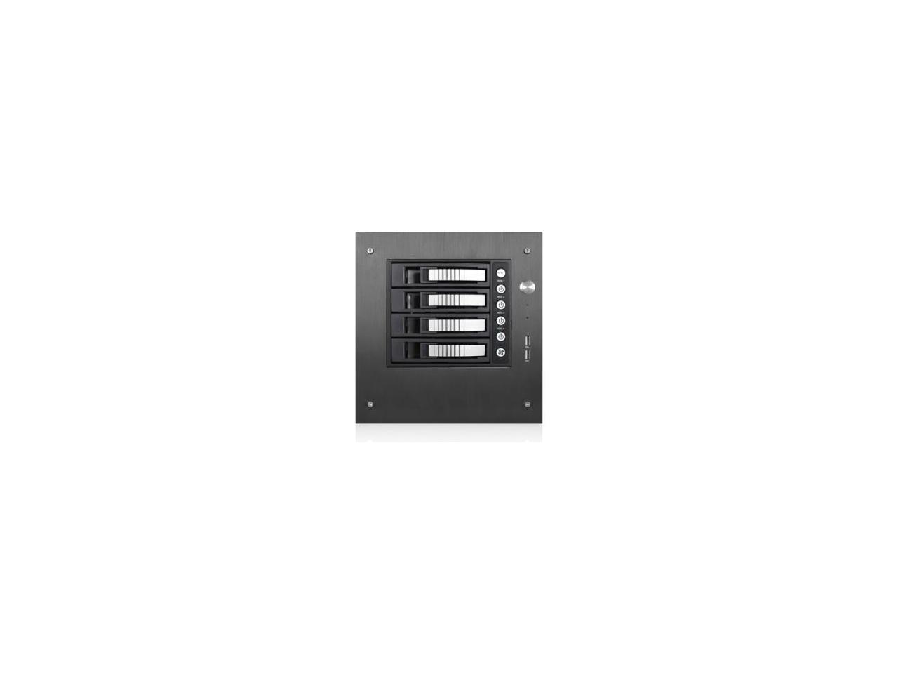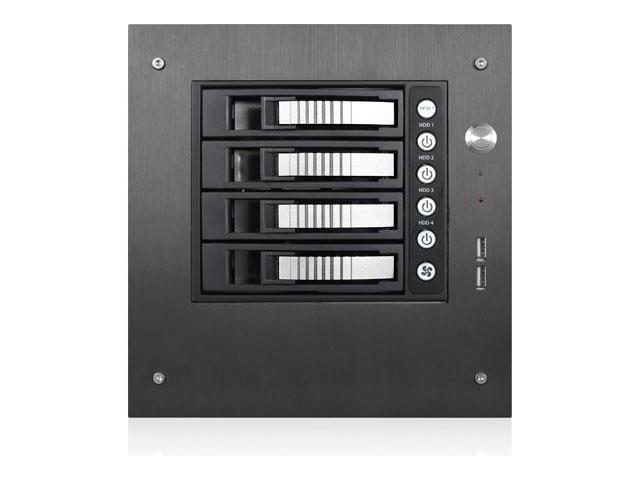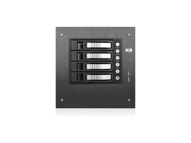 iStarUSA S-35-B4SL Black Aluminum / Steel Tower Compact Stylish 4 x 3.5" Hotswap mini-ITX Tower - Silver HDD Handle