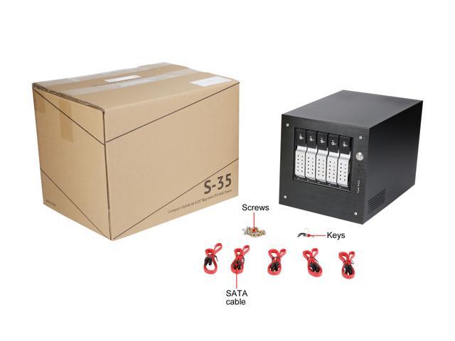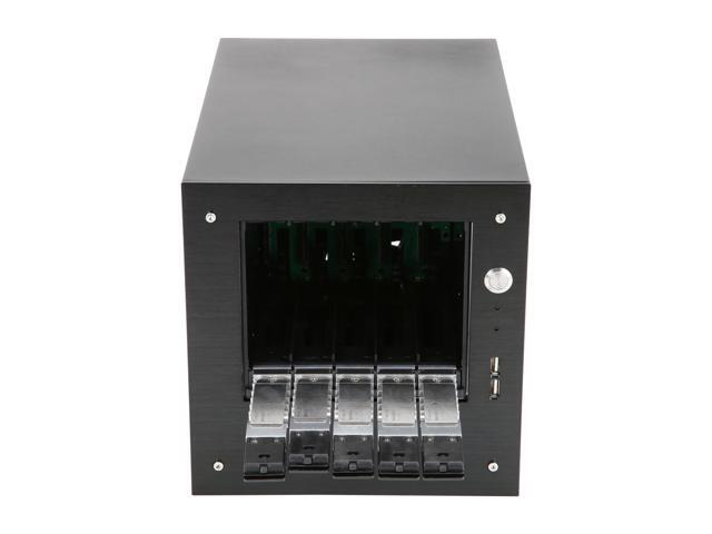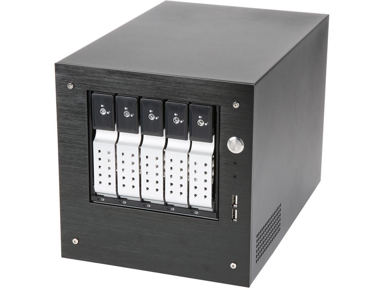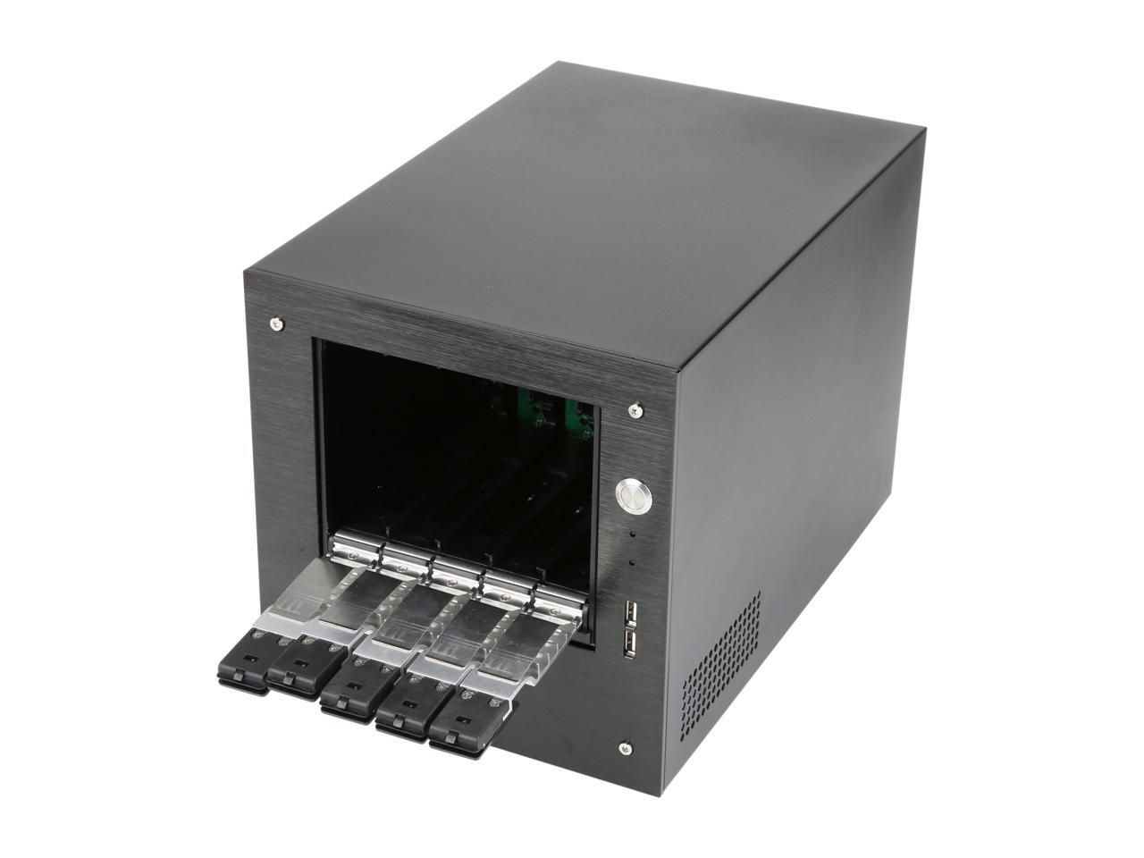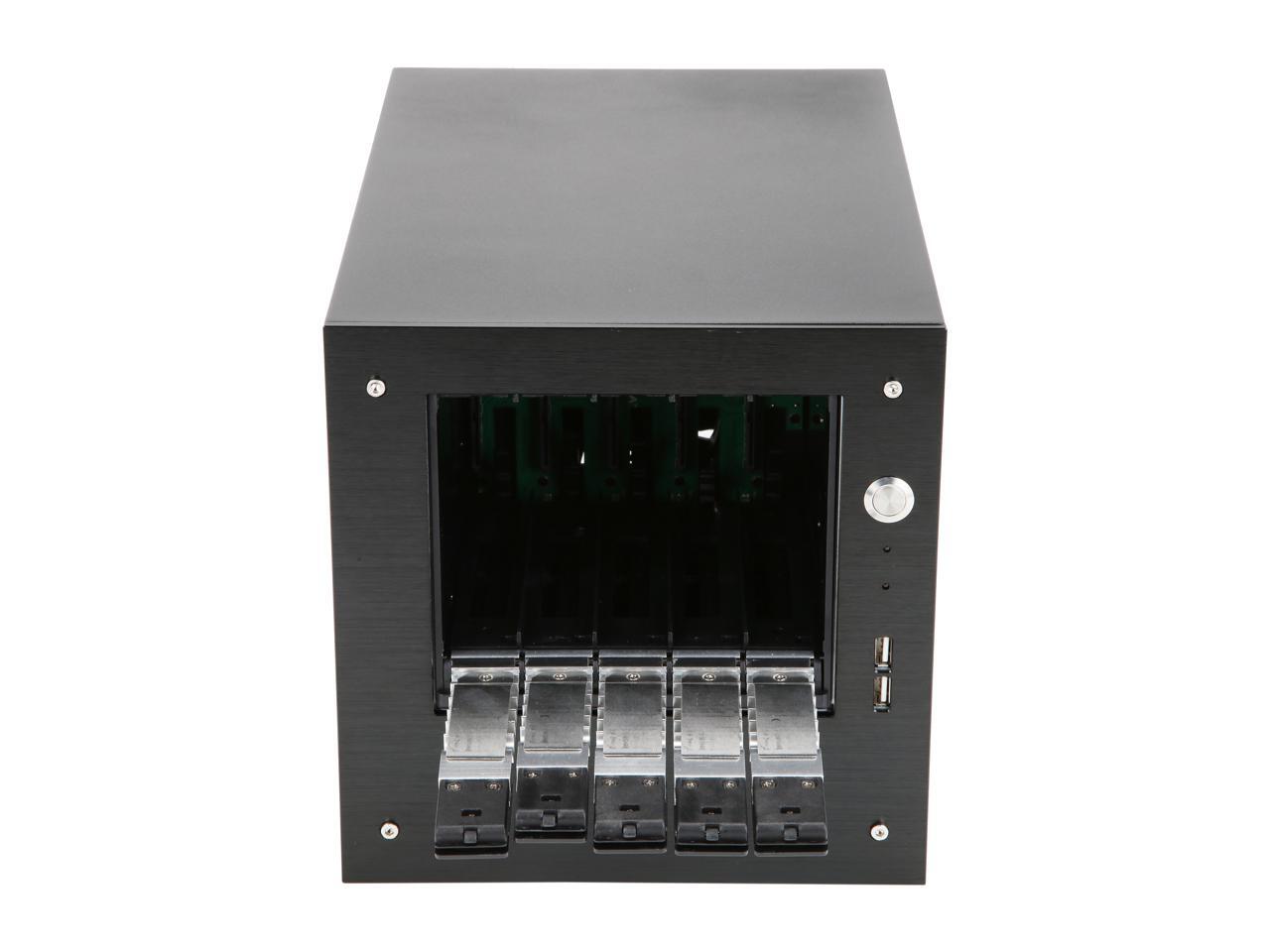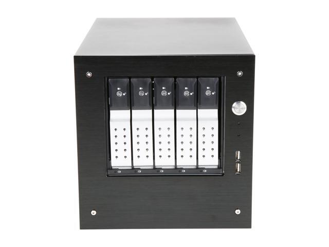 iStarUSA S-35-DE5SL Black Aluminum / Steel Tower Compact Stylish 5 x 3.5" Hotswap Trayless mini-ITX Tower - Silver HDD Handle