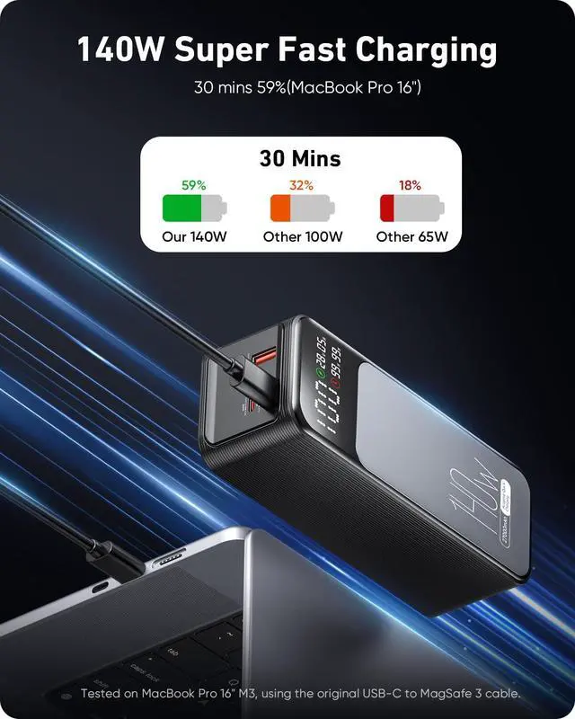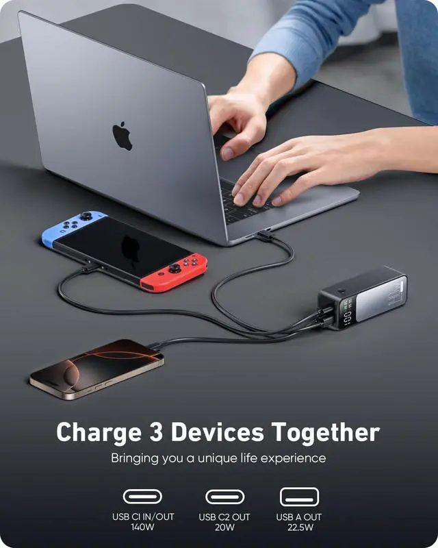 | Special Feature | 140W PD 3.1 USB-C to USB-C cable 3.3ft*1, 140W PD 3.1 in&Out Fast Charging, 27000mah(99.9Wh) High Capacity, 4 Light Modes Flashlight, Smart Digital Display |