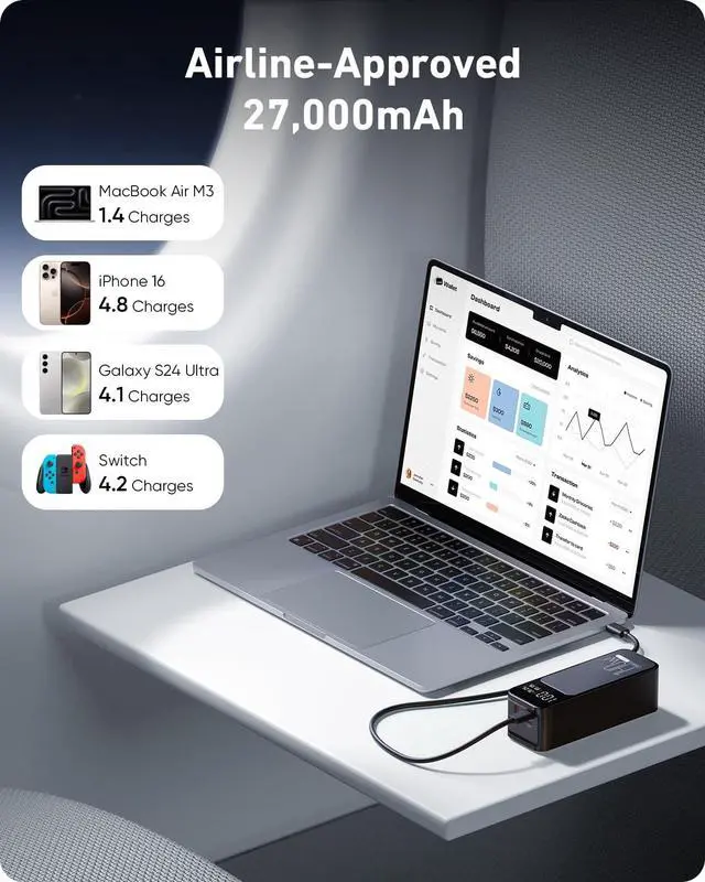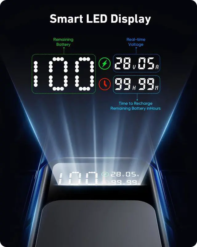 | Special features | 140W PD 3.1 USB-C to USB-C cable 3.3ft*1, 140W PD 3.1 in&Out Fast Charging, 27000mah(99.9Wh) High Capacity, 4 Light Modes Flashlight, Smart Digital Display |