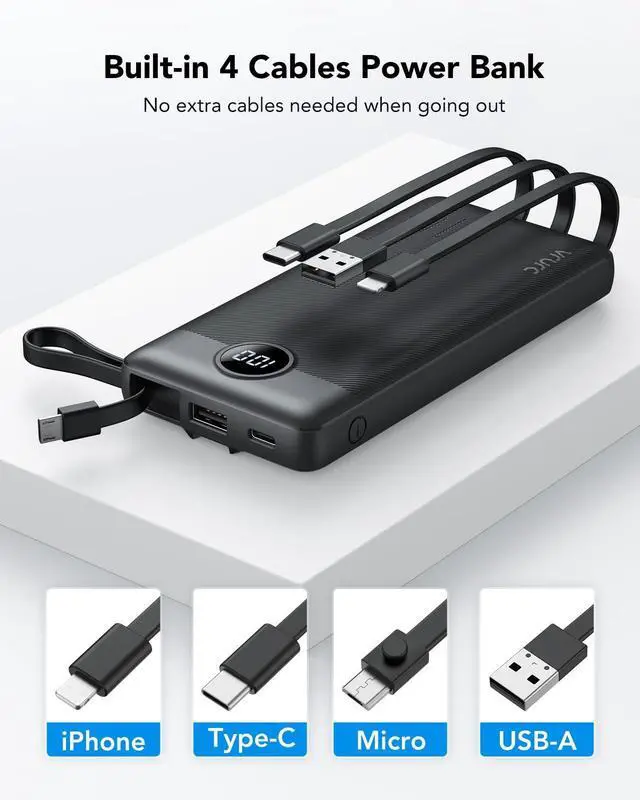 | Special Feature | Built In 4 Cable, USB-C In & Out Port, Lanyard Design, LED Display, Slim & Pocket Size |