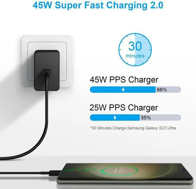 Using the latest PPS charging technology, supports a maximum 45W super fast charging 2.0, so you can fully charge your Galaxy S25/S24/S23/S22 Ultra in under an hour.