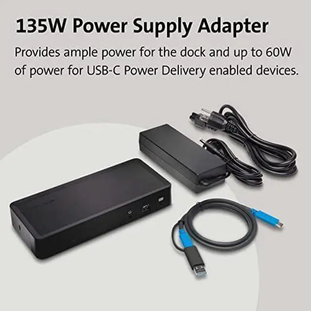 135W Power Supply Adapter provides ample power for dock and up to 60W of power for devices connected via Power Delivery (PD) USB-C.