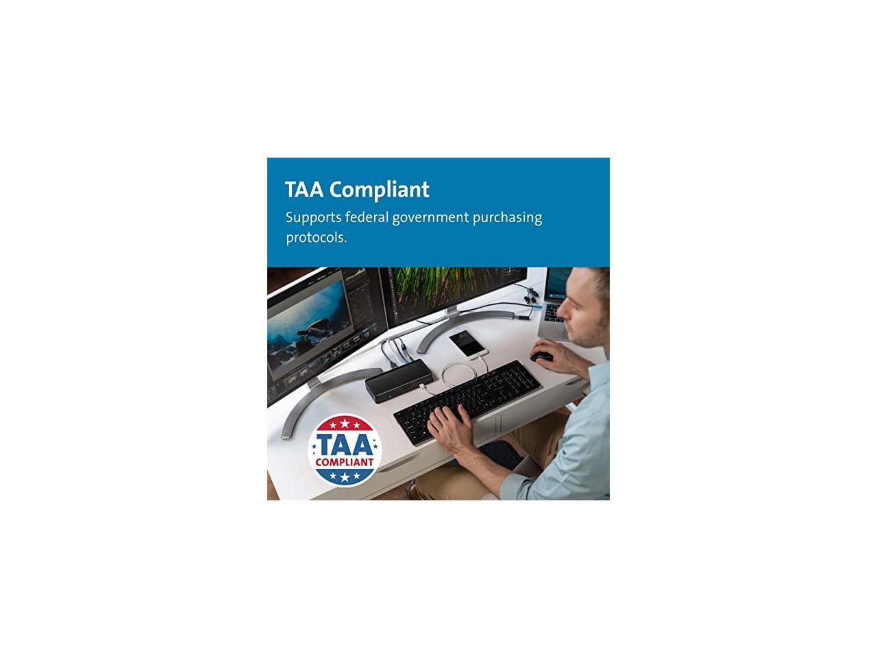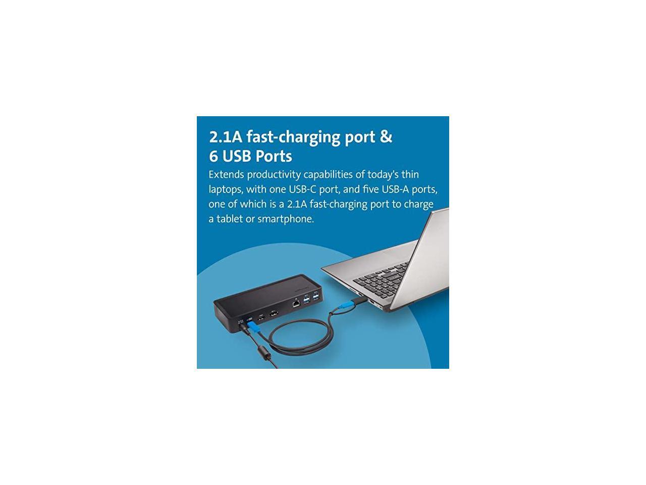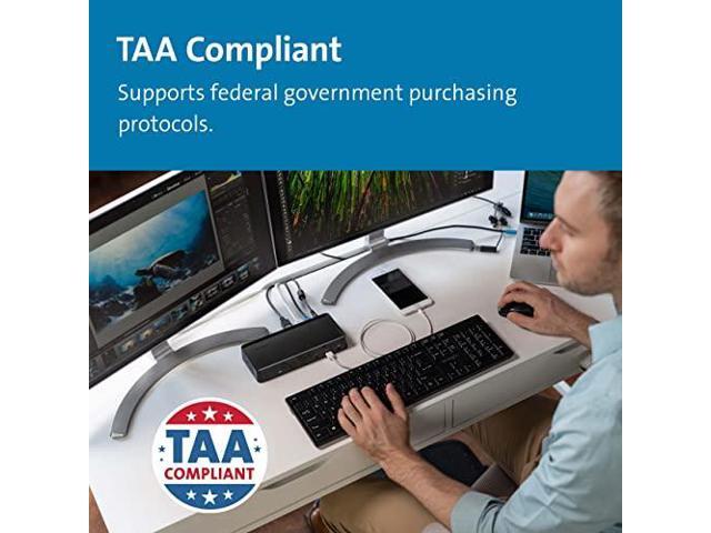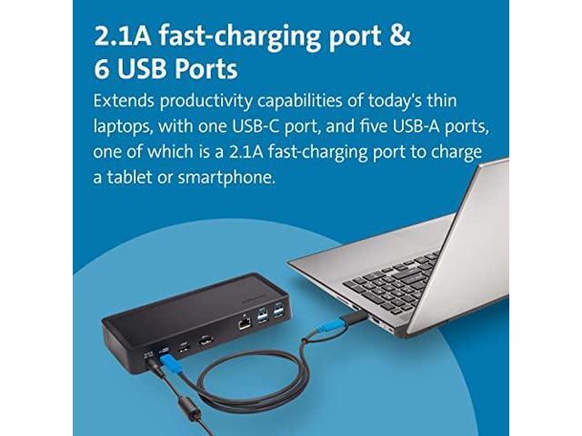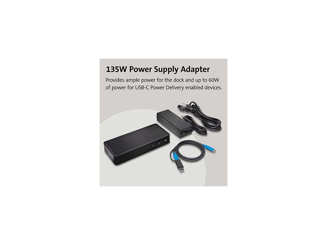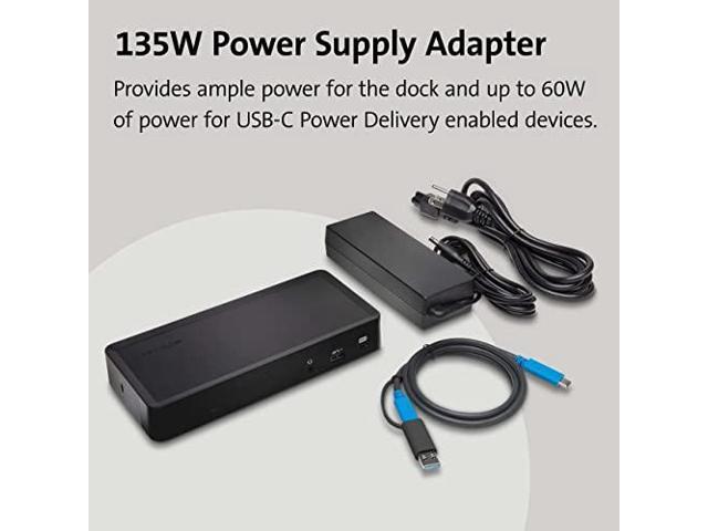 - 1M USB-C cable (included) connects the dock to your device; 135W power provides up to 60W laptop charging (windows laptop must accept Power Delivery) plus power for peripherals; for charging USB-A laptops or USB-A Surface devices with up to 60W, use our optional power splitter part# K38310NA