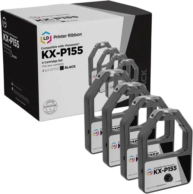 Save even more with our compatible ribbon cartridges. This listing contains 4 KX-P155 Black ribbon cartridges. Why pay more for brand name Panasonic KX-P155 cartridge when our compatible printer supplies deliver excellent quality for a fraction of the price? This set works in the following