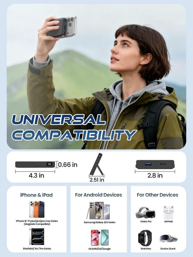 LED Display & Smart Safety ProtectionA clear LED digital screen shows the exact remaining battery level at a glance. Built-in protection against over-charging, over-current, over-discharge, and short circuits ensures safe and dependable charging. Certified for everyday reliability and peace of mind.