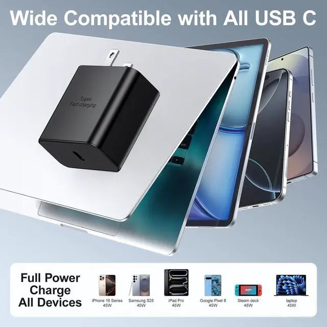 Super Fast Charging 45W USB C Fast Charger 6ft Type C Cable Compatible with Samsung Galaxy S25/S25 Ultra/S25+/S24 Ultra/S24/S24+/S23 Ultra/S23/S22/S20/S21/Note 10,Galaxy Tab