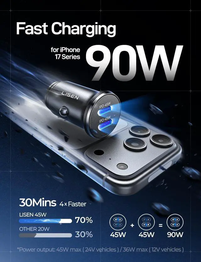 | Built-In Media | 1 Pack LISEN 90W USB C Car Charger Cigarette Lgihter Adapter |