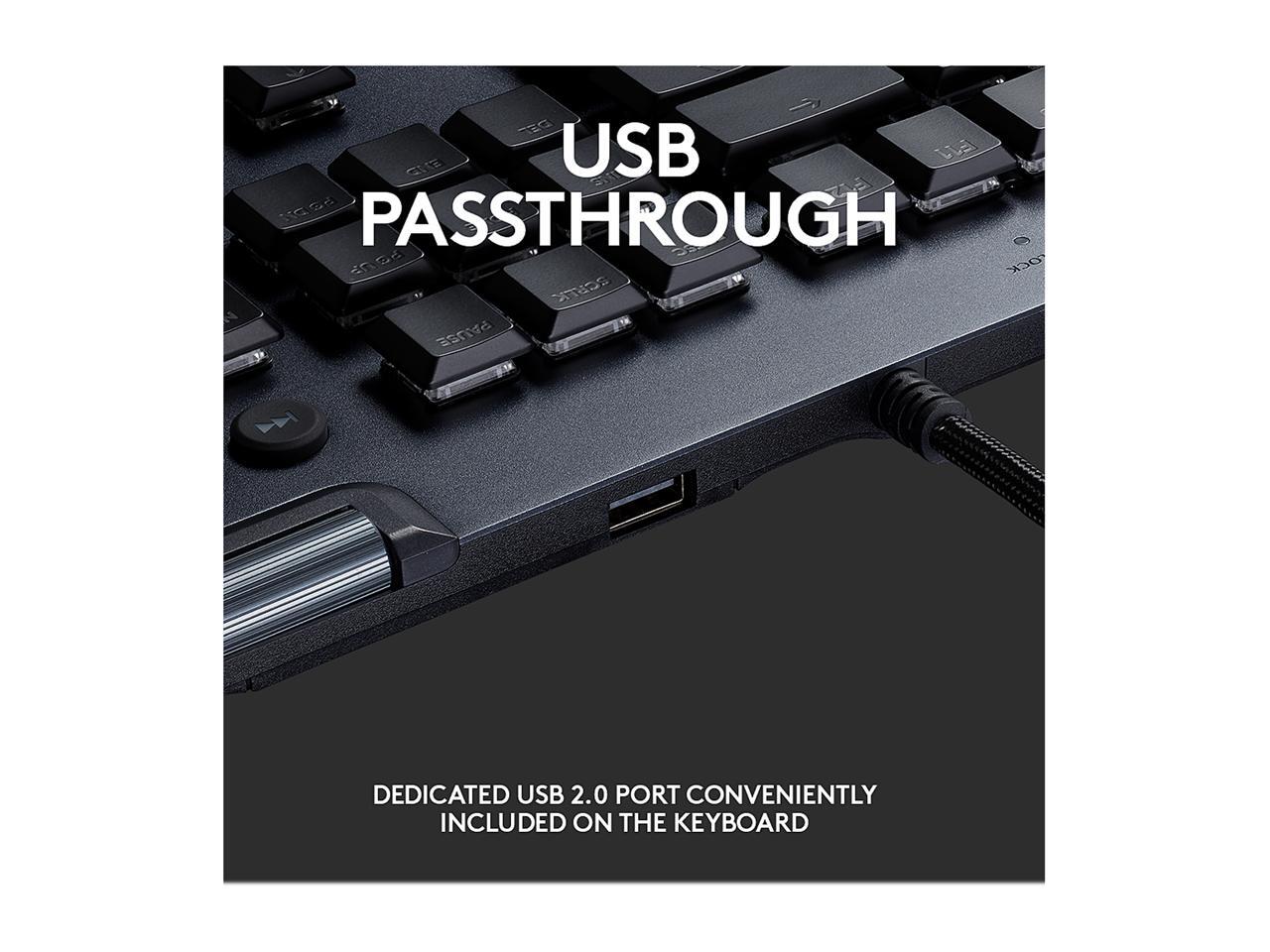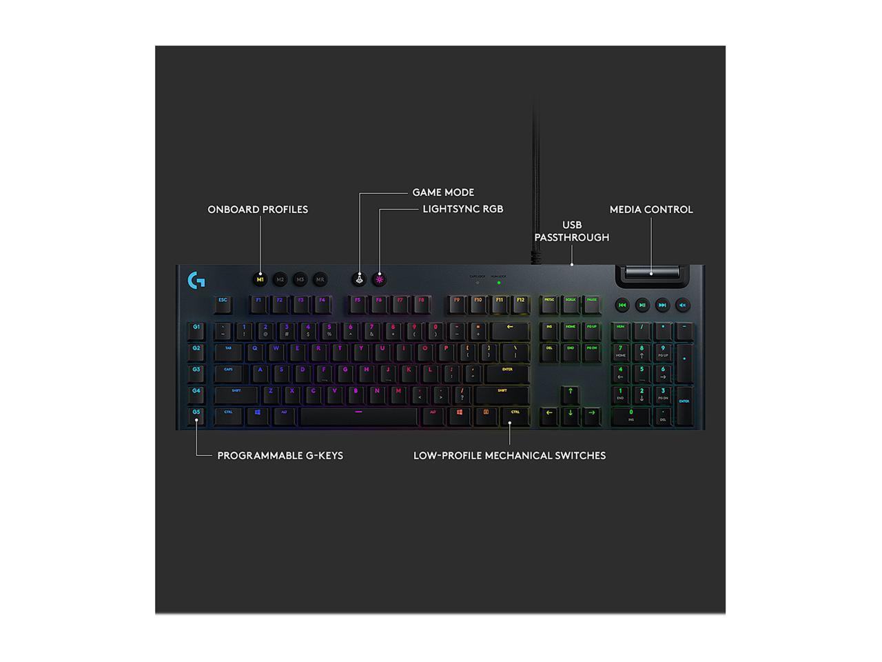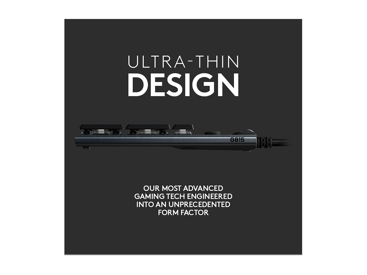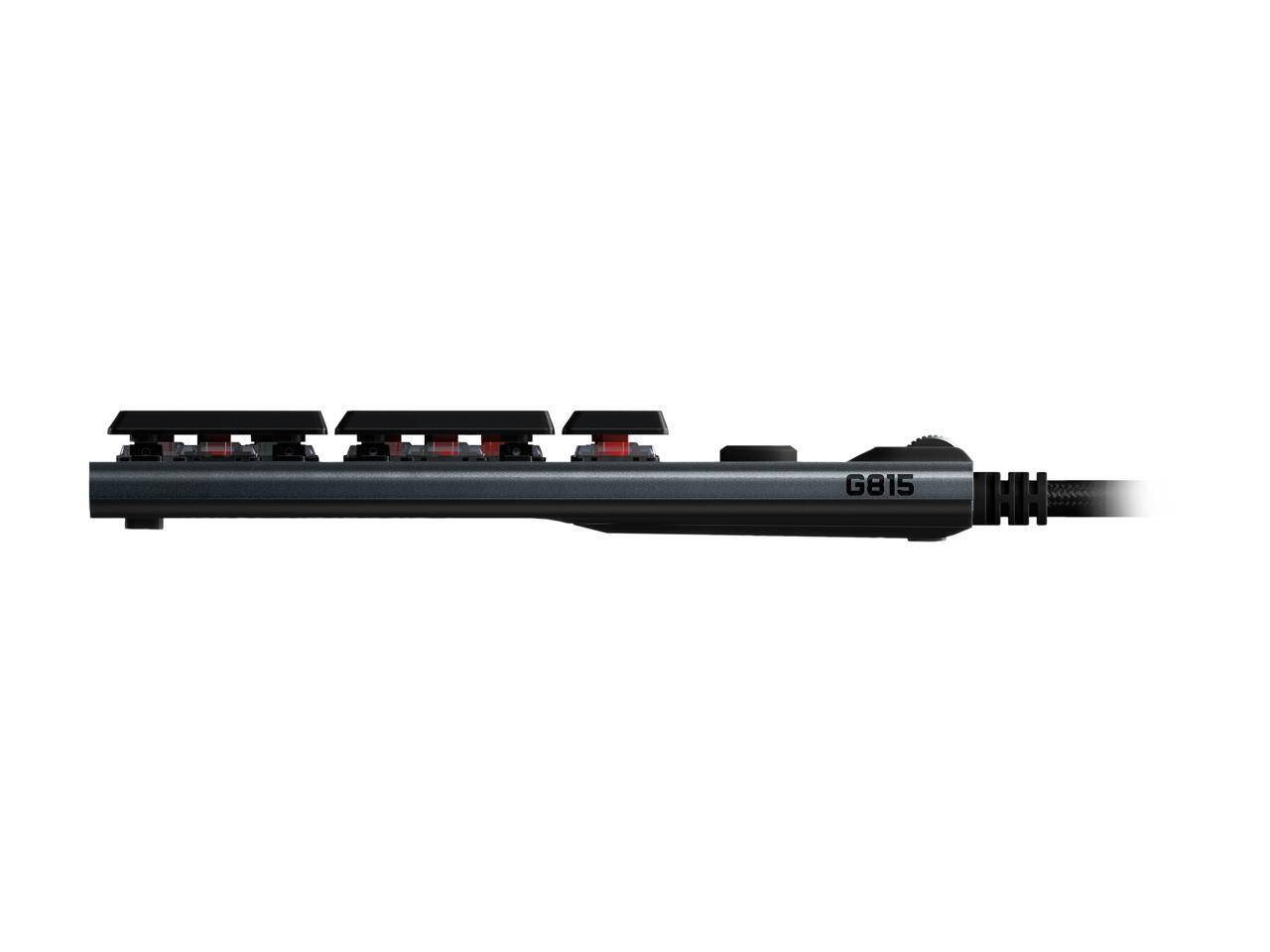 Logitech G815 LIGHTSYNC RGB Mechanical Gaming Keyboard with Low Profile GL Linear key switch, 5 programmable G-keys,USB Passthrough, dedicated media control - Linear, Black