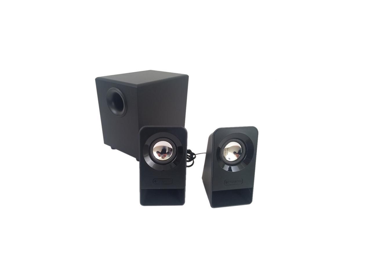 A down-facing subwoofer with a 4.00" driver provides a rich bass experience with these 2.1 speakers.