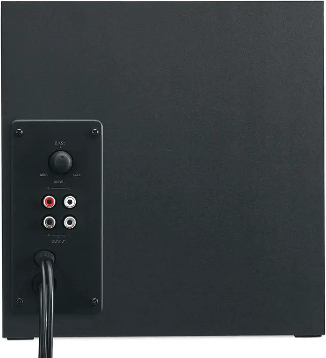 Easily access power, volume, and the headphone jack using the wired control pod. Adjust the bass level with the dedicated control knob on the back of the subwoofer.