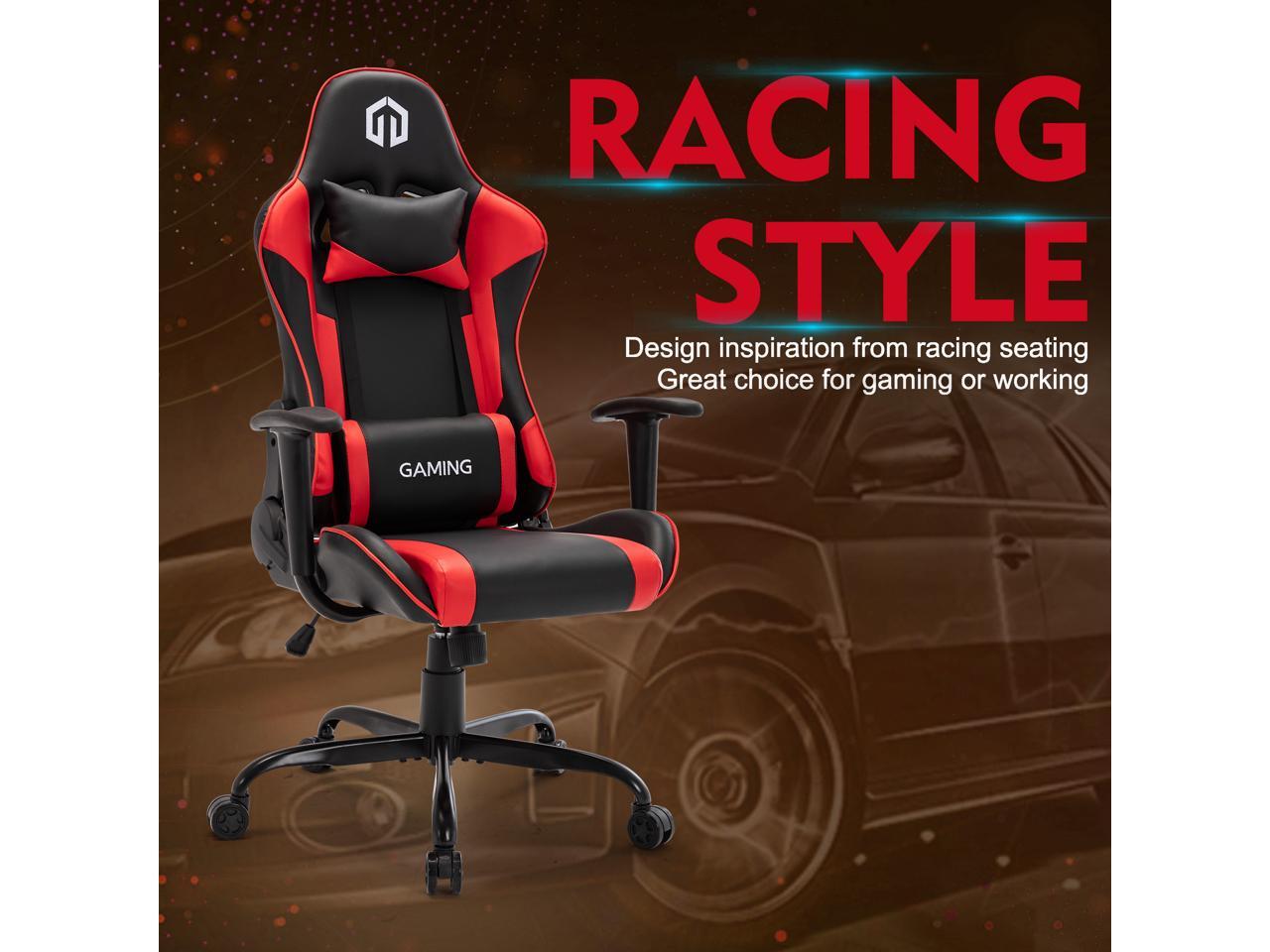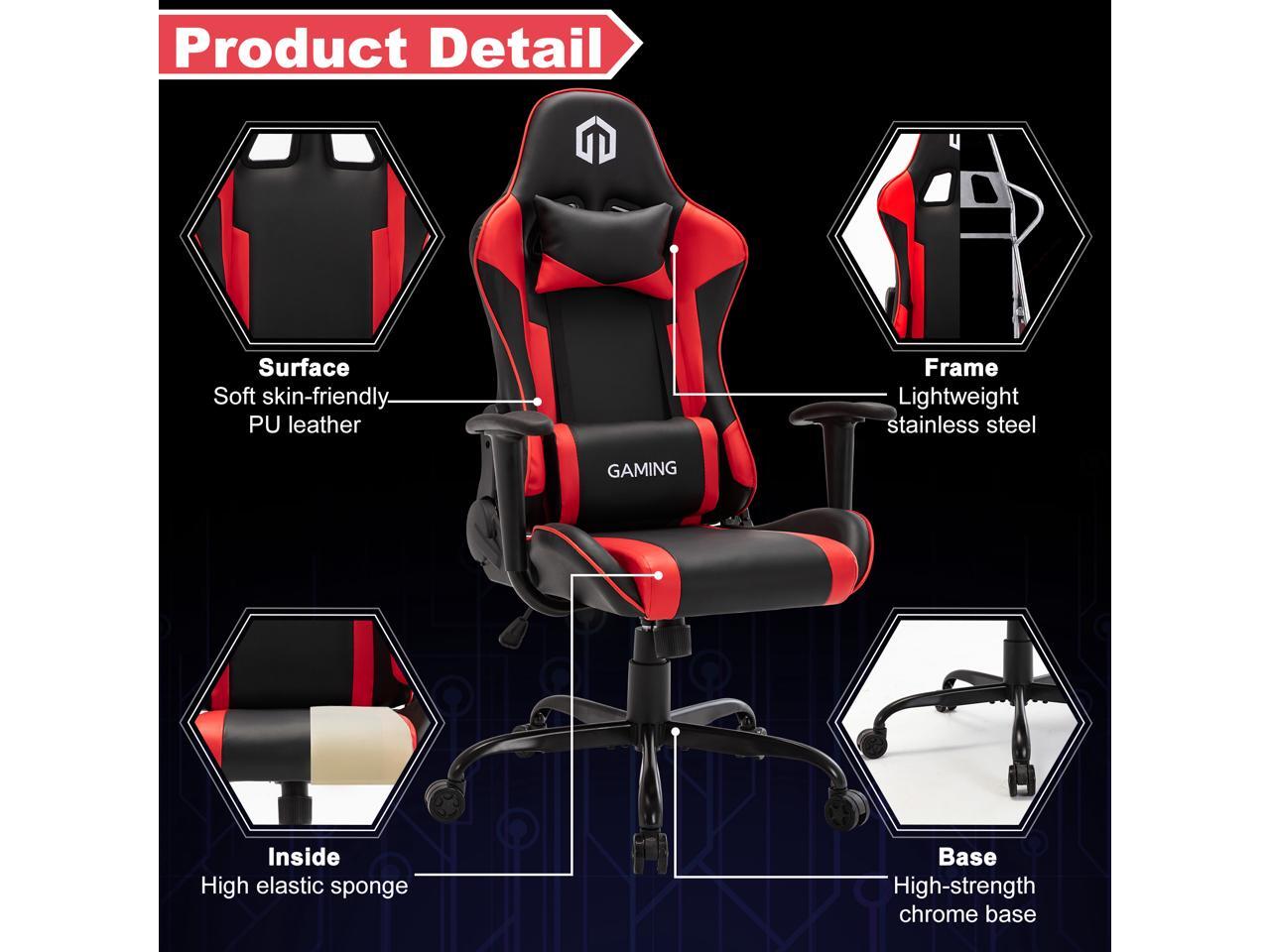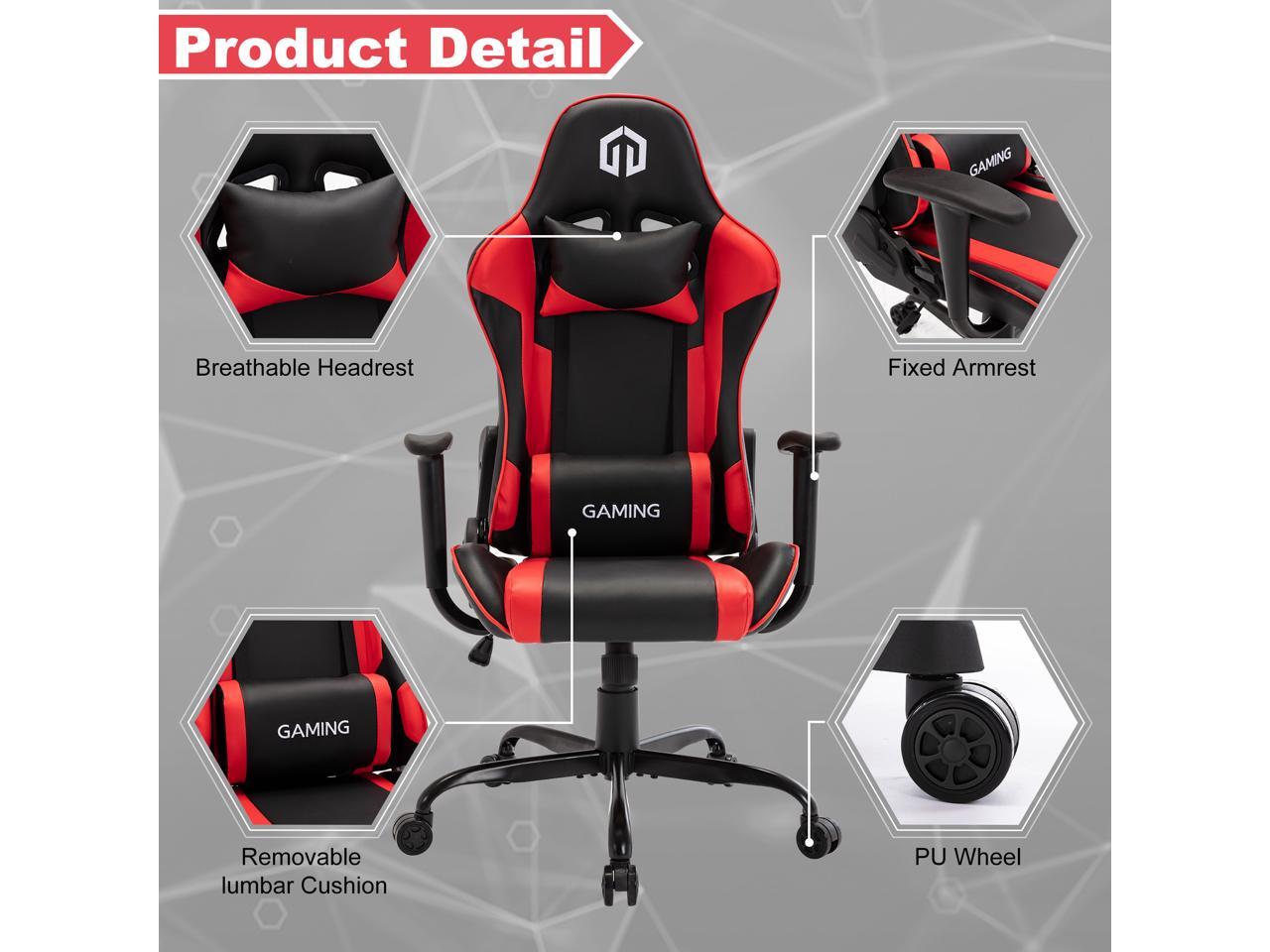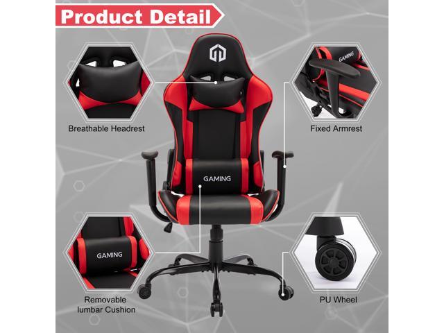 LSSPAID Gaming Chair Racing Computer Chair Executive and Ergonomic Reclining Swivel Chair with Headrest and Lumbar Cushion (Black/Red)