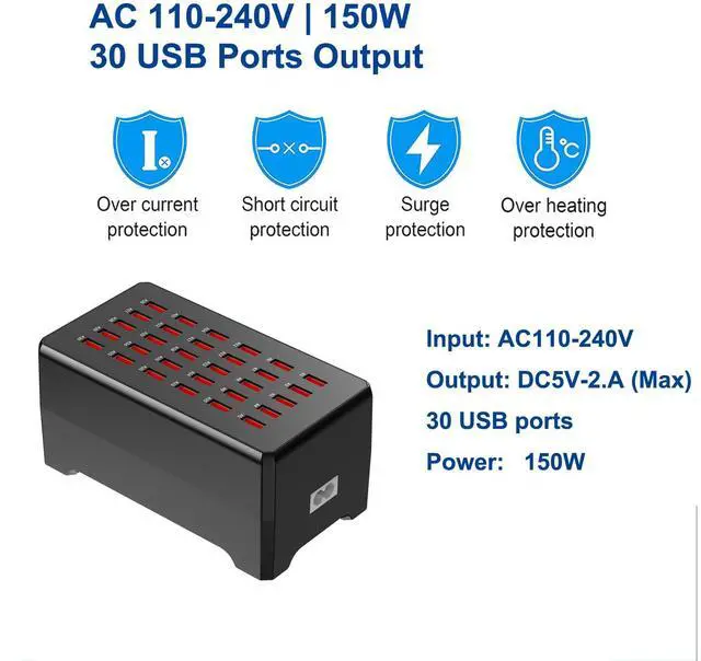 the safety of charging equipment. Centralize and organize your home or office with a single, power-saving 30-ports USB , quickly and easily with the smart USB ports.