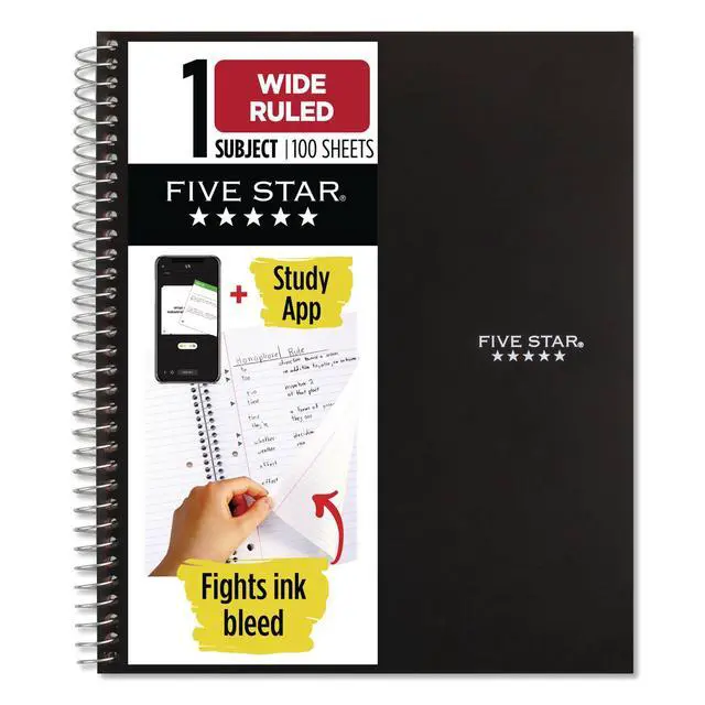 One-subject notebook features durable, water-resistant covers to keep your notes protected all year long. Wide-ruled, high-quality paper resists ink bleed to help keep your writing legible. Neat sheet pages are perforated for clean, consistent removal. Spiral lock wire prevents the coil from snagging onto your clothing or backpack. Storage pockets keep your loose sheets organized and are reinforced to prevent tearing.