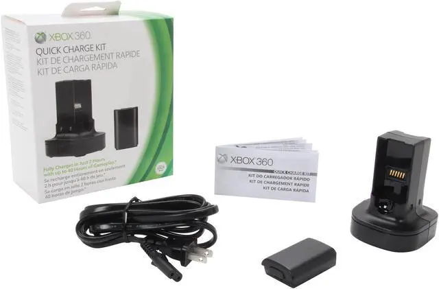 | Features | Recharge in a flash and kiss disposable batteries goodbye with the Xbox 360 Quick Charge Kit. It's the fast way to recharge up to two battery packs at once. Your Xbox 360 Wireless Controller needs a new battery? Swap in a fresh pack and play longer with up to 40 hours of play per charge. It means more gaming, less waiting.