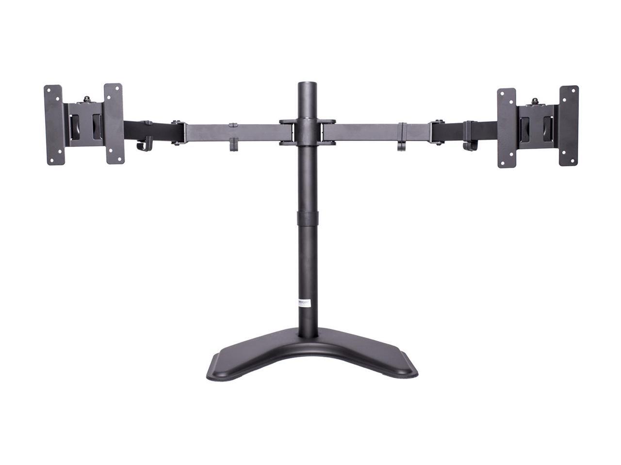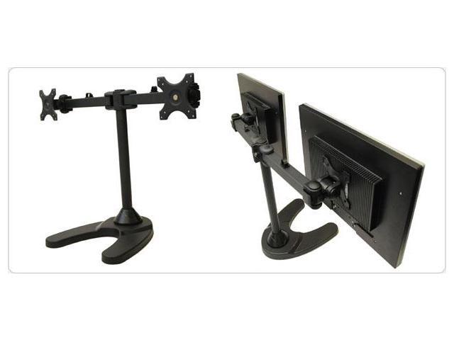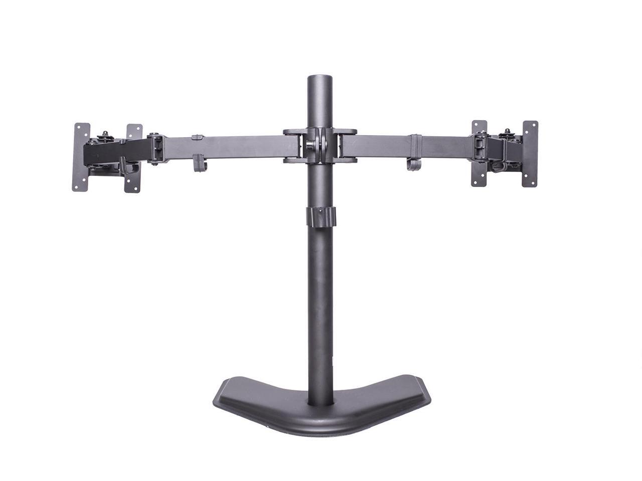 MonMount Dual LCD Monitor Freestanding Monitor Stand holds LCD and LED measuring up to 24" (27" diagonally) in viewing area. This Mount is our all new variation on our classic Dual Monitor Free Standing Mount. We have taken out Over 20% of the excess metal, making this stand more environmentally friendly!