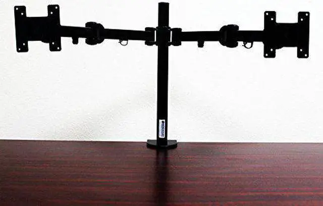 Dual LCD Monitor Mount 2 Screens Stand Desk Clamp Fully Adjustable VESA 75mm/100mm Did you know you can increase your efficiency by 30% just by adding a second monitor? Get the benefit without losing the work space with this Adjustable Dual LCD Mount from Monmount! The LCD-1940B is our most popular product, and for good reason! Perfect for 14” to 24” displays, this product is fully articulating, allowing you to lift your monitors right up to eye level and adjust them in any direction—lift them up and down, pan them left and right, rotate a full 360°, and angle them up to 180°! You won’t have any trouble finding the best viewing angle with this mount! Setup couldn’t be easier either! Build your stand in minutes and clamp it to the rear of your desk with a quality c-clamp, then attach your LCDs to the VESA standard brackets.