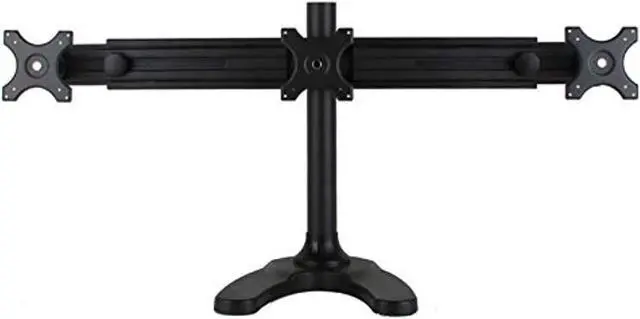 Mount three displays quickly and easily with the Monmount LCD-6430 display stand! Compatible with 100mm and 75mm VESA displays from 14" to 26", this stand serves the dual function of raising your display's closer to eye-level and consolidating desk space, which could really be eaten up by three separate monitor stands! The stand sets up easily thanks to included tools and hardware and easy to follow instructions. It's built from the highest quality metal and coated with an unobtrusive black finish that will protect your mount and keep it looking for years! Order your LCD mount today! Specifications Monmount LCD-6430 Monitor Mount Holds three LCD monitors Stands on a weighted, u-shaped deskstand for optimal weight distribution Compatible with VESA 100mm and 75mm displays Great for gaming, web design, data entry, or anyone interested in increasing visible real-estate! Displays mount to adjustable heads which swivel for the best viewing angle Triple Monitor Stand for 26" LCD Flat panels Mounting hardware