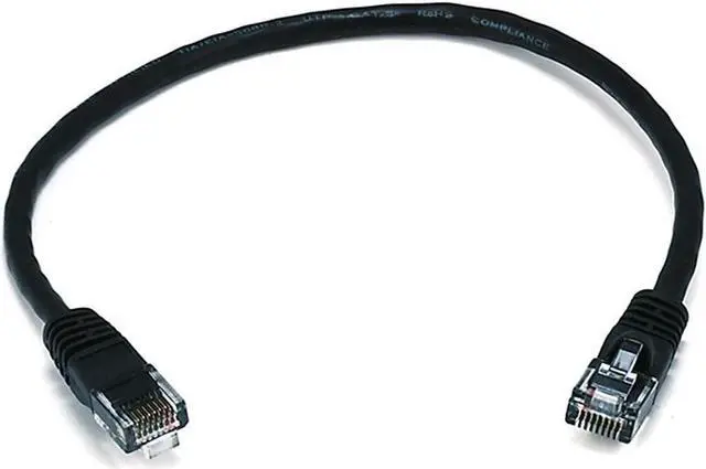 Monoprice Cat5e Ethernet Patch Cable - Network Internet Cord - RJ45, Stranded, 350Mhz, UTP, Pure Bare Copper Wire, 24AWG, 1ft, Black
