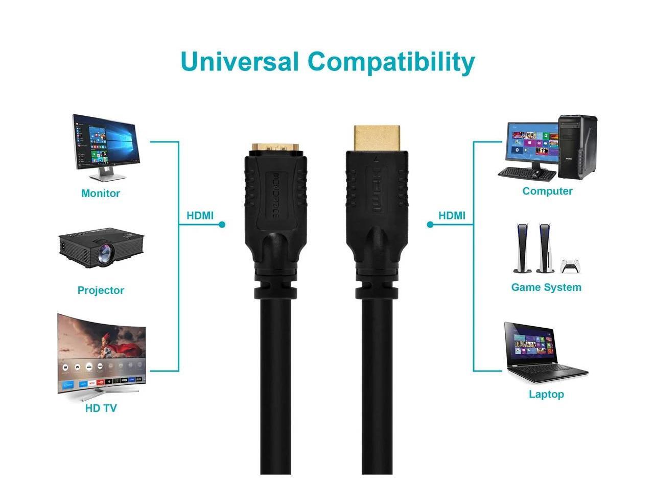 Monoprice Commercial Series High Speed HDMI Extension Cable, 4K @ 24Hz, 10.2Gbps, 24AWG, CL2, 10ft, Black