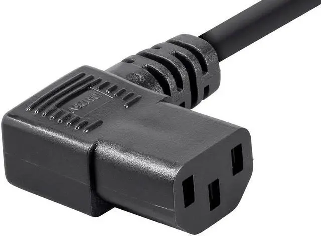 Whether the power cable that came with your equipment are too long or too short, you can find replacement cables in the perfect length right here. These Right Angle Power Cords feature a 90 degree C13 connector (PC side) which allows for better placement in tight situations. They are made to the same stringent standards as are standard PC power cables with the convenience of a right angle connector. The standard 3 prong wall plug (NEMA 5-15p) to PC connector (IEC C13) cable was made commonplace by PC power supplies. Today, they can be found providing power connections for many different products such as computers, monitors, printer, projectors and HDTV's.