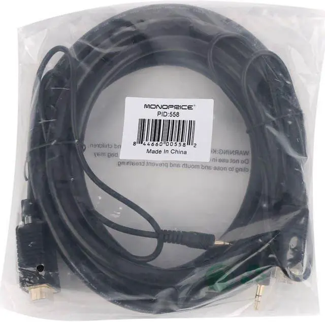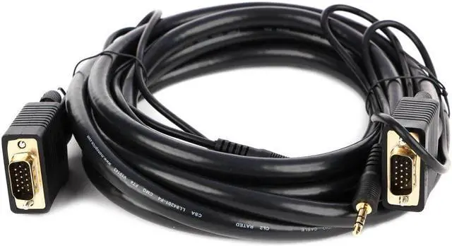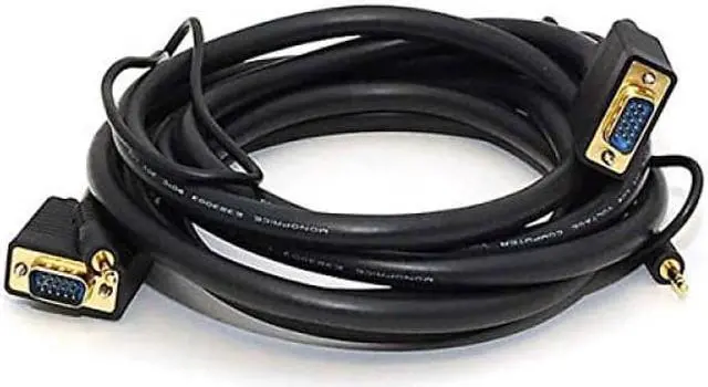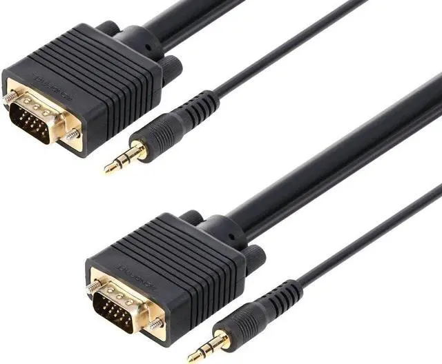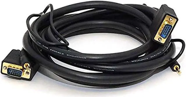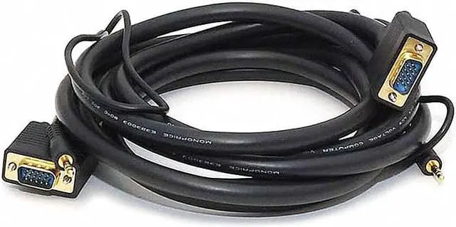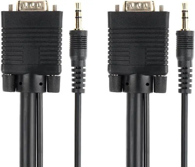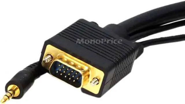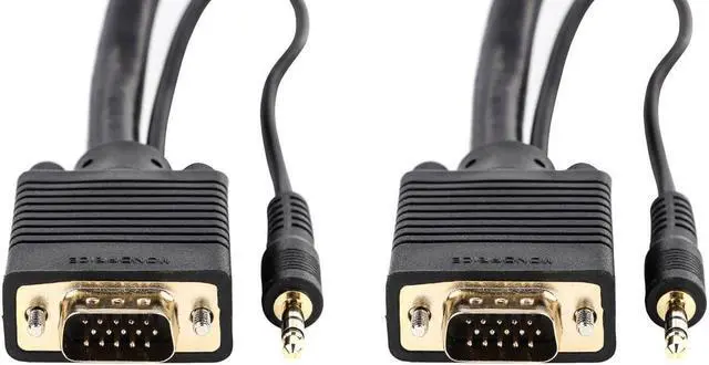Despite the introduction of DVI and HDMI, the common VGA connection is still the primary connection for most computer monitors. This triple-shielded cable is designed to handle analog VGA and extended VGA resolutions. It features gold-plated male DE-15 (aka HD-15 or DB-15) connectors on each end for smooth, corrosion-free connections. Additionally, it has a stereo audio line with 3.5 mm (1/8") connectors at each end. Each 3.5 mm lead has an additional 22 inches of length beyond the DE-15 connector, so you can connect it to your sound card and to the audio input of your TV or monitor.