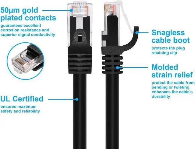 • Buy with Confidence: With Monoprice's Lifetime Warranty on all Cables, you can rest assured we stand behind our products and our customers.|Unshielded Twisted Pairs (UTP).|350MHz bandwidth.|50m gold plated contacts.