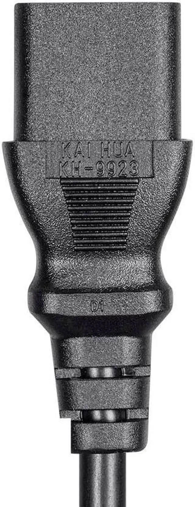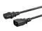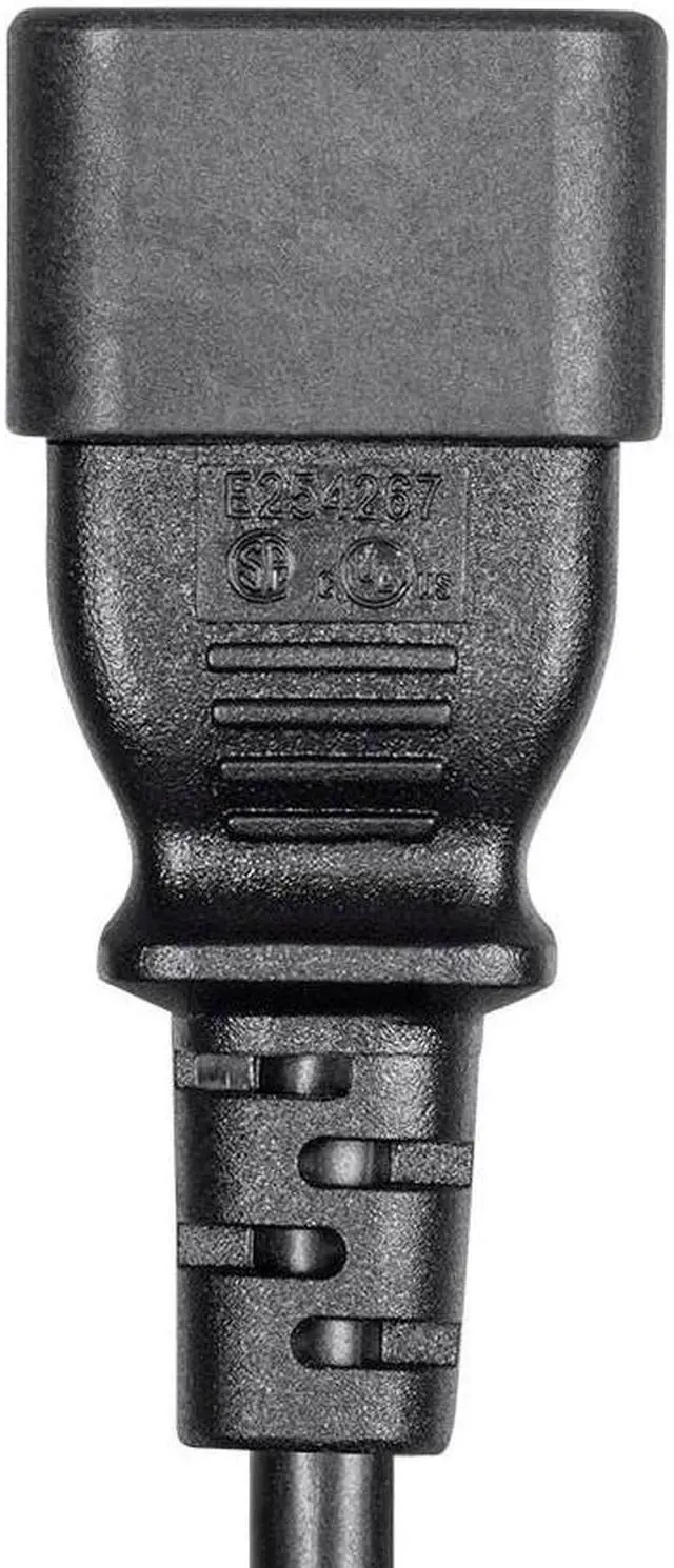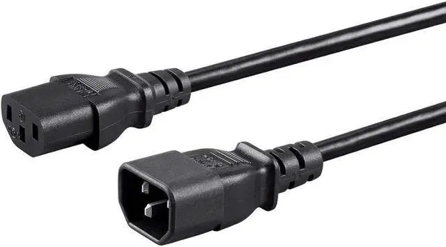 Save an AC power outlet by connecting your computer monitor to the computer power supply or extend a cable with an IEC 60320 C13 connector on one end. This cable features a female IEC 60320 C13 connector on one end and a male IEC 60320 C14 plug on the other end. Simply mate the male C14 connector to another cable with a female C13 connector. Alternatively, mate the male C14 connector to the C13 panel connector on a computer power supply then mate the female C13 connector to a male C14 connector on a monitor or monitor AC power adapter.