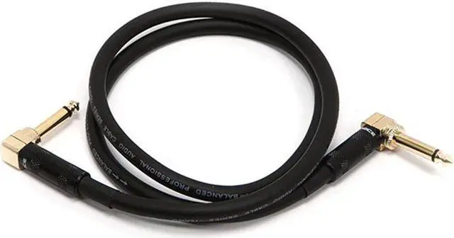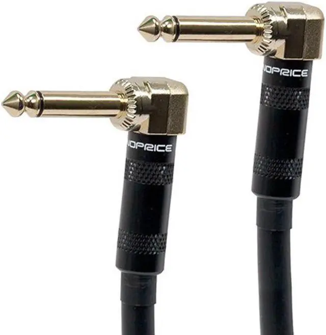 Connect speakers and other audio equipment with this Premium 1/4 TS Patch Cable with 90-degree connectors from Monoprice! This unbalanced cable features 90-degree TS/Mono plugs on each end. It uses 16 AWG stranded, pure copper conductors and employs copper braid shielding with 97.5 Percent coverage to ensure that stray radio frequency and electromagnetic signals do not degrade the audio quality of your performance. The plugs are gold plated to provide smooth, corrosion-free connections as well as maximum electrical conductivity. Note that this cable is intended for general audio use. For high-end, low-noise performance and recording use we recommend our Cloth Series cables, PIDs 601410, 601415, and 601420.