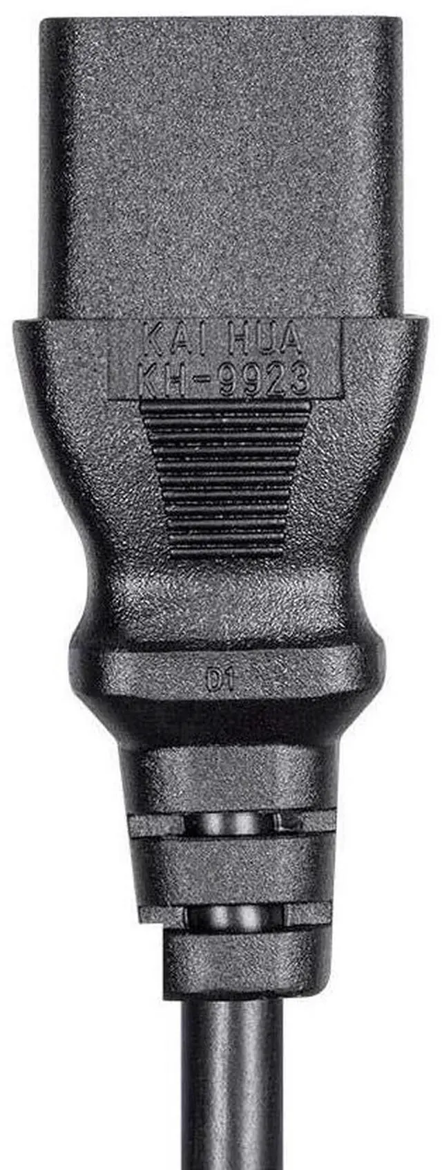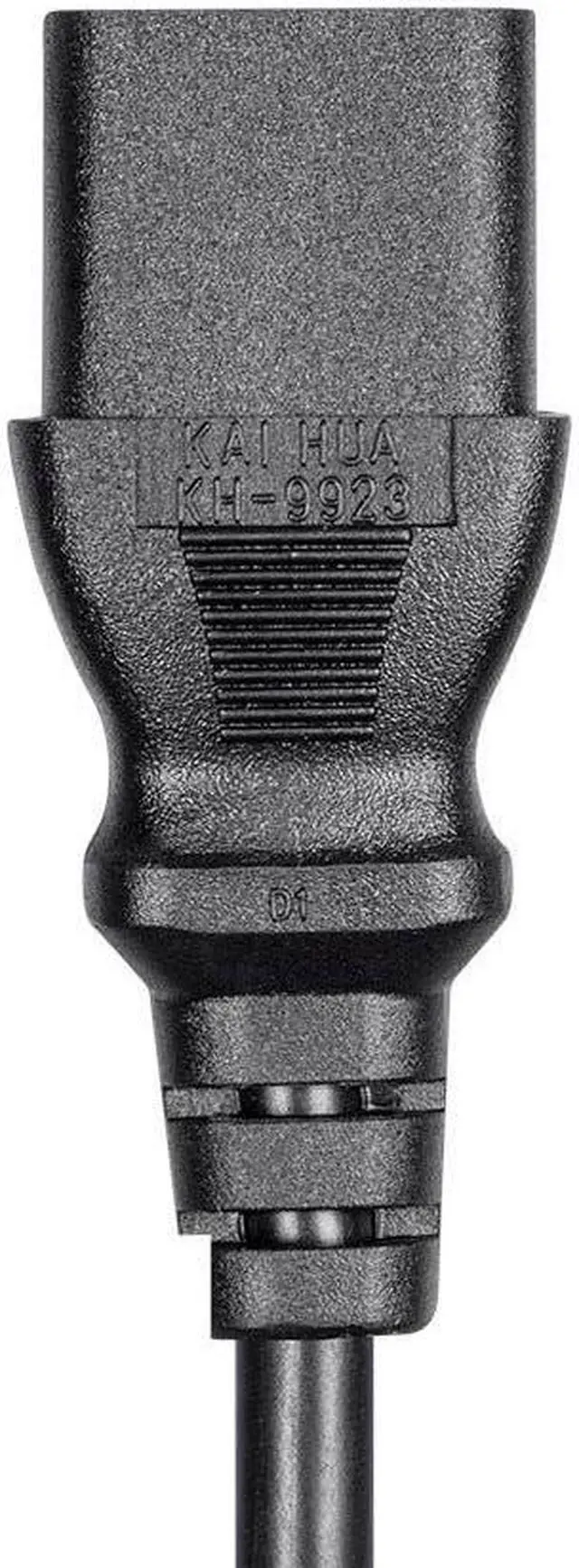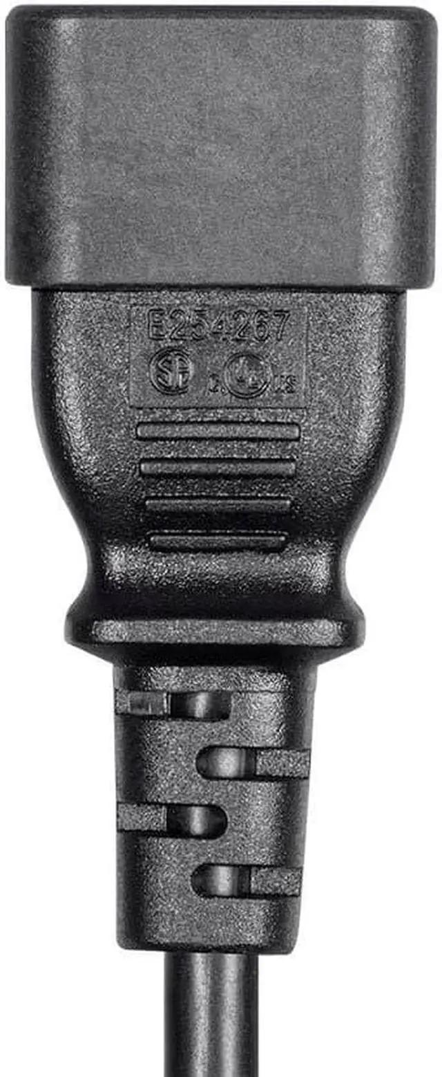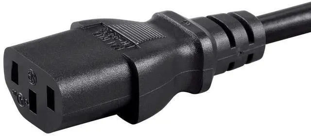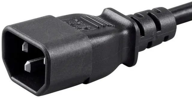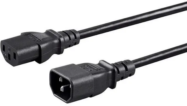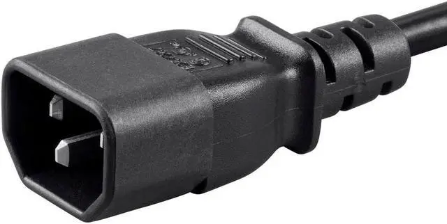 Save an AC power outlet by connecting your computer monitor to the computer power supply or extend a cable with an IEC 60320 C13 connector on one end. This cable features a female IEC 60320 C13 connector on one end and a male IEC 60320 C14 plug on the other end. Simply mate the male C14 connector to another cable with a female C13 connector. Alternatively, mate the male C14 connector to the C13 panel connector on a computer power supply then mate the female C13 connector to a male C14 connector on a monitor or monitor AC power adapter.
