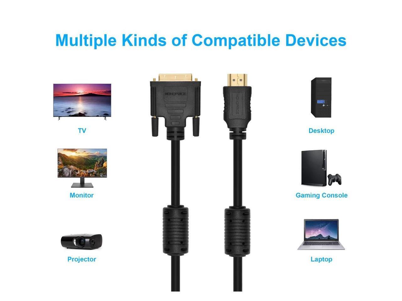 - Buy with Confidence: With Monoprice's Lifetime Warranty on all Cables, you can rest assured we stand behind our products and our customers.|This is specifically for connecting a device with an HDMI connector to another device equipped with a Single Link DVI-D connector typically found on PCs projectors and older video equipment before the HDMI standard became widespread|These cables can NOT carry audio|They carry video signals only! If you are looking for a High Speed HDMI Cable or a Standard HDMI Cable to connect equipment with HDMI