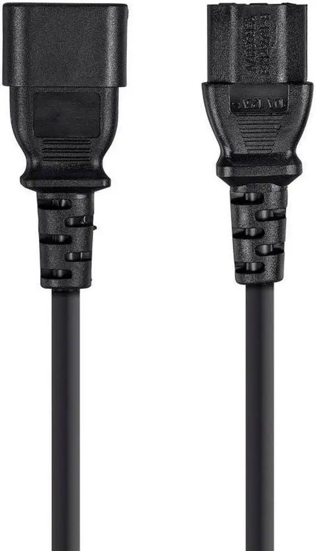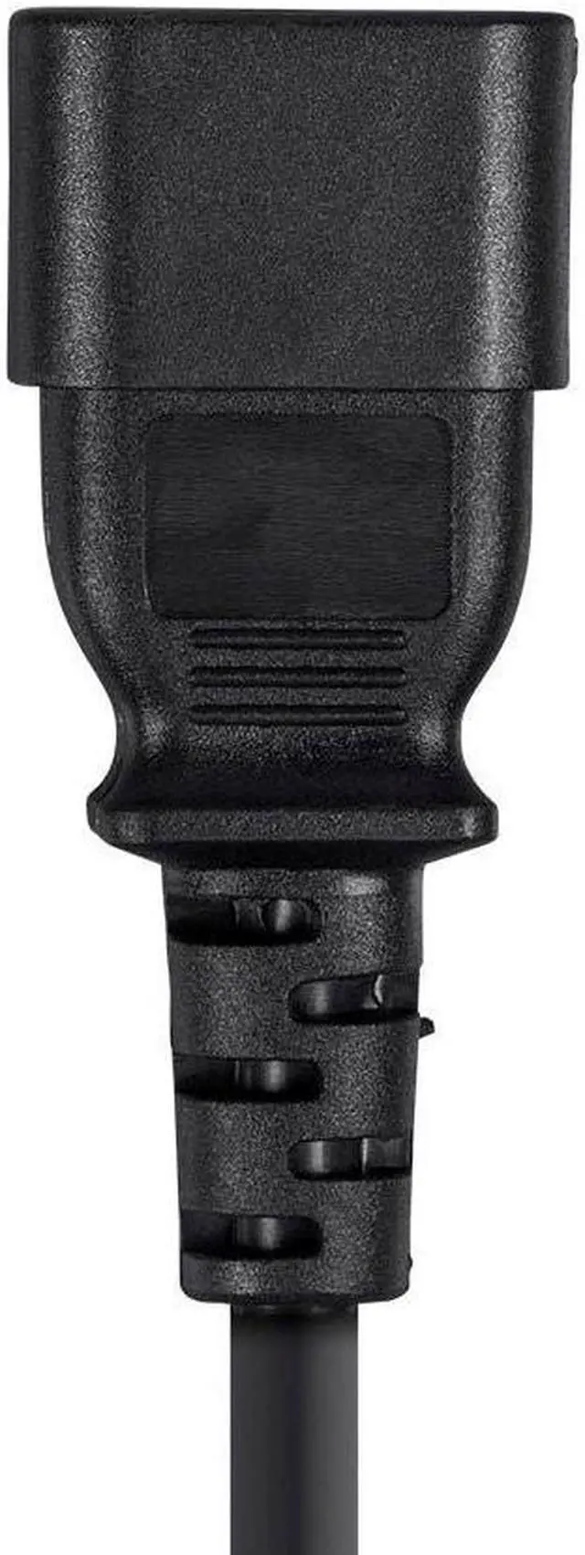 Save an AC power outlet by connecting your computer monitor to the computer power supply or extend a cable with an IEC 60320 C13 connector on one end. This cable features a female IEC 60320 C13 connector on one end and a male IEC 60320 C14 plug on the other end. Simply mate the male C14 connector to another cable with a female C13 connector. Alternatively, mate the male C14 connector to the C13 panel connector on a computer power supply then mate the female C13 connector to a male C14 connector on a monitor or monitor AC power adapter.