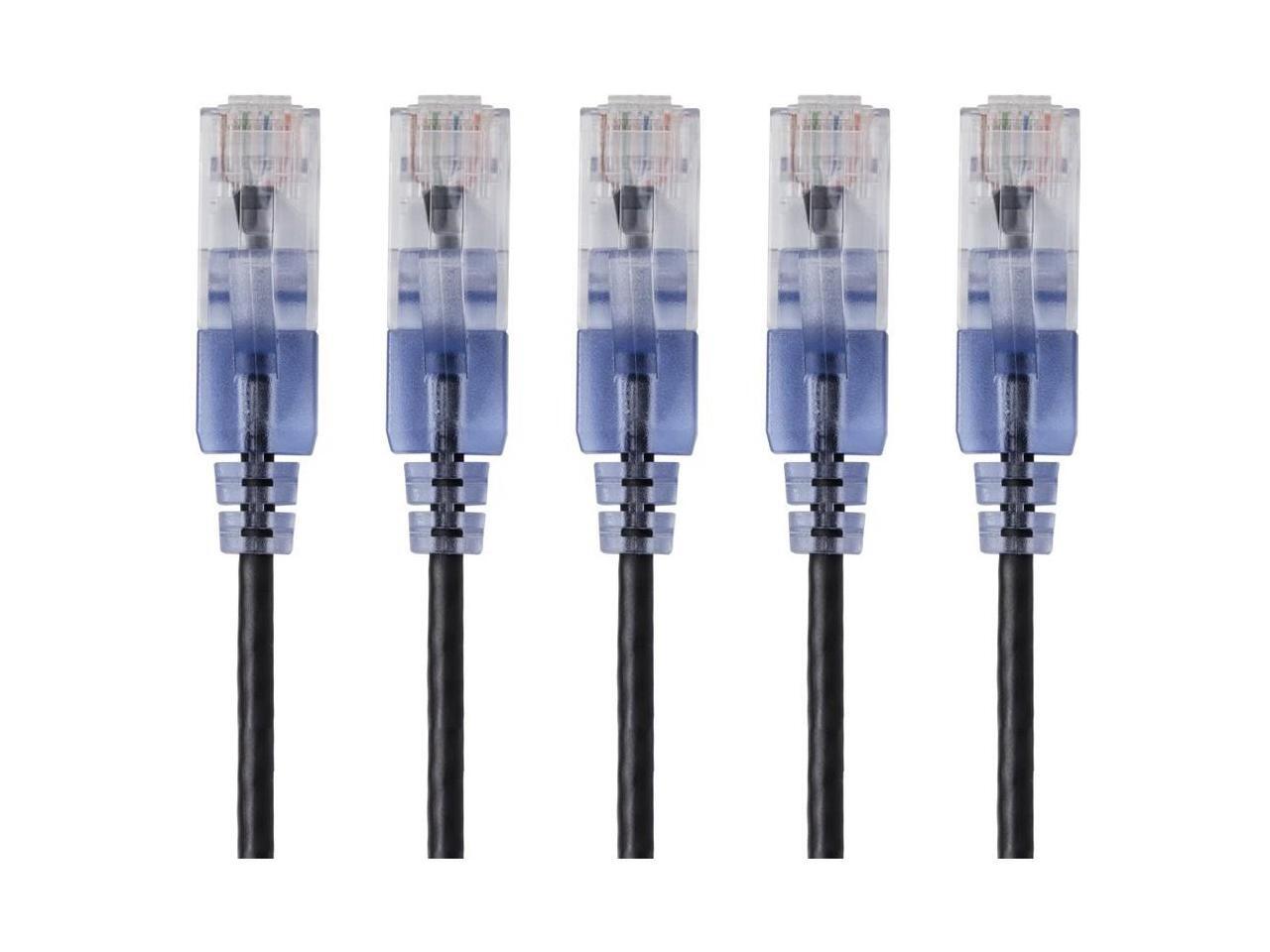 Monoprice 5-Pack, SlimRun Cat6A Ethernet Network Patch Cable, 7ft Black