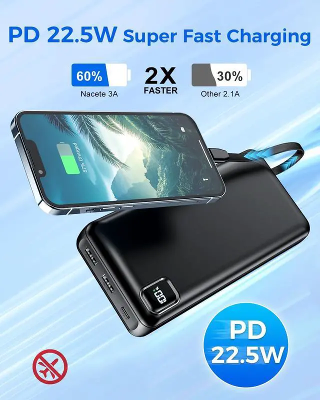 Nacete power bank is suitable for a wide range of scenarios, such as: Traveling Keeps your devices charged during long journeys, flights, or when exploring new places. Outdoor Activities Essential for camping, hiking, cycling, or fishing where access to electricity is limited. Daily Commute Provides reliable backup power during bus, train, or subway rides. Business and Work Ensures smartphones, tablets, and laptops stay powered during meetings, conferences, or business trips. Emergency Situations Acts as a dependable power source during power outages or urgent calls. Events and Gatherings Convenient for concerts, festivals, or exhibitions where outlets are scarce. Multi-Device Use Ideal for charging multiple gadgets simultaneously, such as phones, wireless earbuds, smartwatches, and Bluetooth speakers. Nacete power bank is a portable energy storage device designed to charge electronic gadgets on the go. Its main functions and purposes include: Mobile Charging Provides backup power for smartphones, tablets, smartwatches, wireless earbuds, and other USB-powered devices when no outlet is available. Portability Compact and lightweight, making it convenient for travel, outdoor activities, and emergency situations. Multiple Device Support Feature multiple USB ports or USB-C interfaces, allowing users to charge more than one device simultaneously. Emergency Power Supply Serves as a reliable energy source during power outages or when traveling in areas without stable electricity. Fast Charging Support quick-charge and high-capacity outputs, reducing charging time for compatible devices. Safety Protection Equipped with features like overcharge, short-circuit, and temperature protection to ensure safe charging. Versatility Can also be used to power small electronic accessories, portable fans, cameras, Bluetooth speakers, or even laptops (depending on capacity and output).